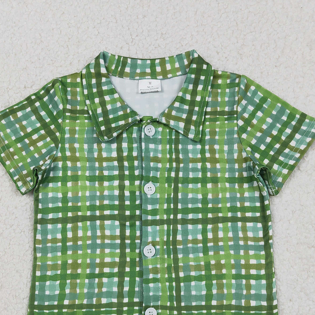 12.16 RTS NO MOQ (In stock)BT1456 Baby Boys Green Checked St Patrick Button Shirts Top