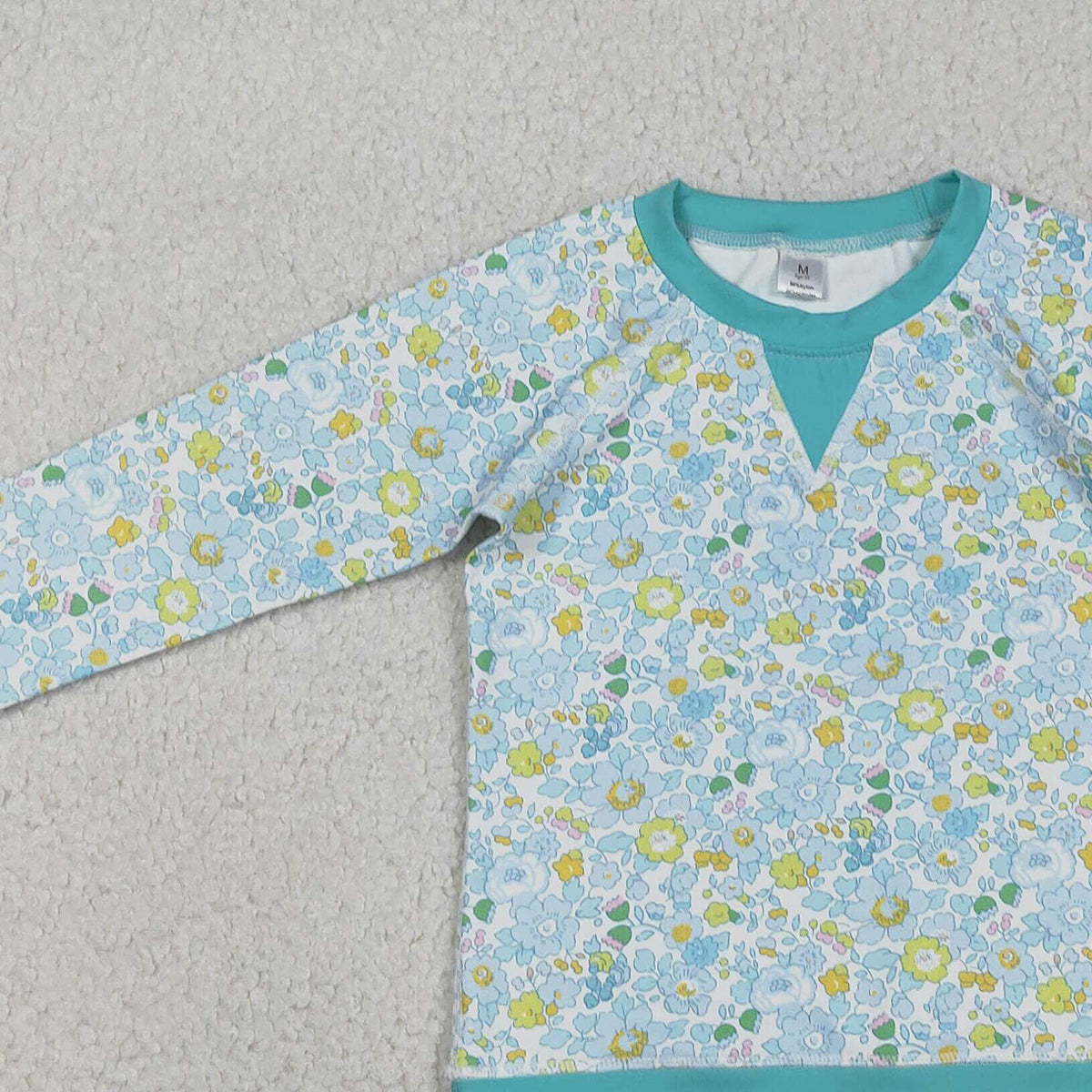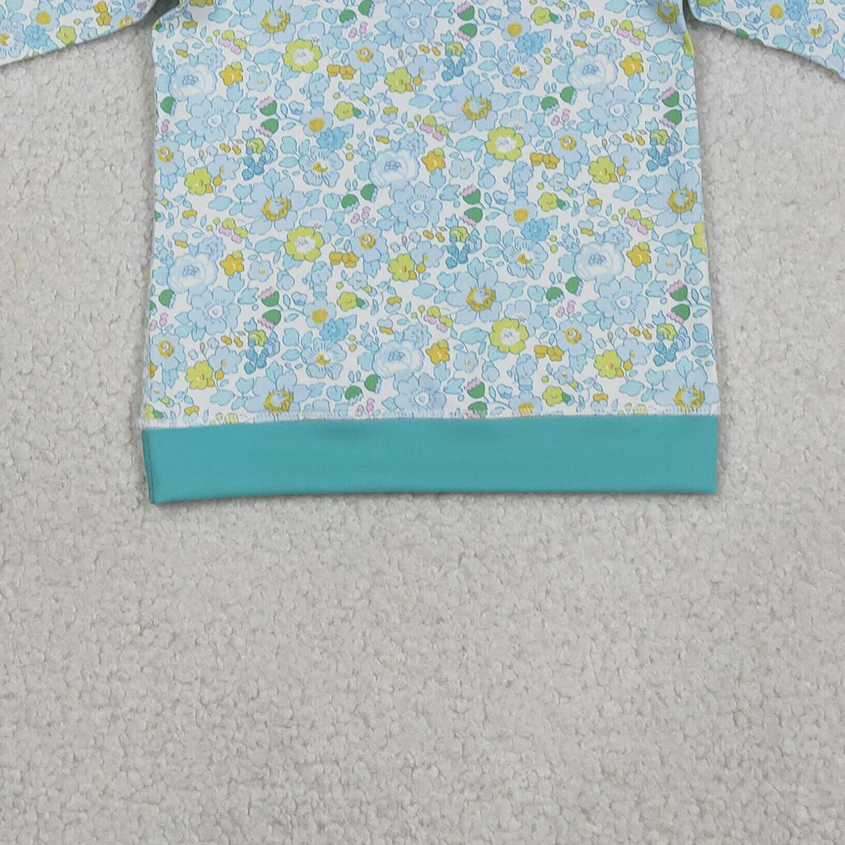 12.16 RTS NO MOQ (In stock)GT1294 Baby Girls Green Blue Flowers Long Sleeve Yoga Active T-shirts Top