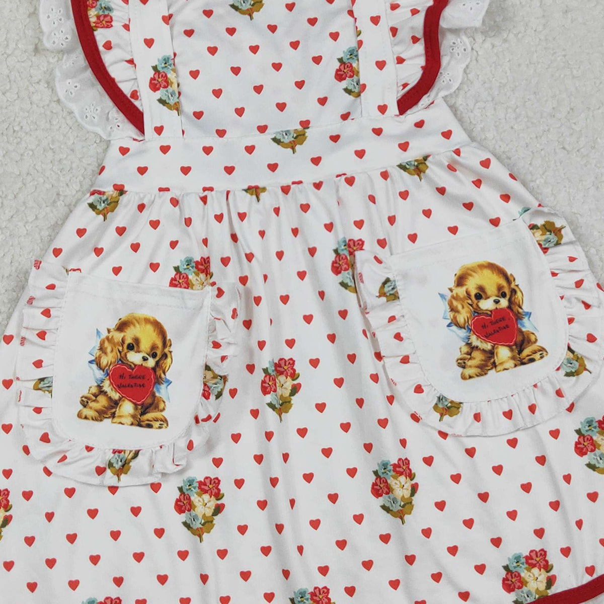 12.17 RTS NO MOQ (In stock)GSD2963 Baby Girls Hearts Dogs Flowers Valentines Pockets Knee length Dresses