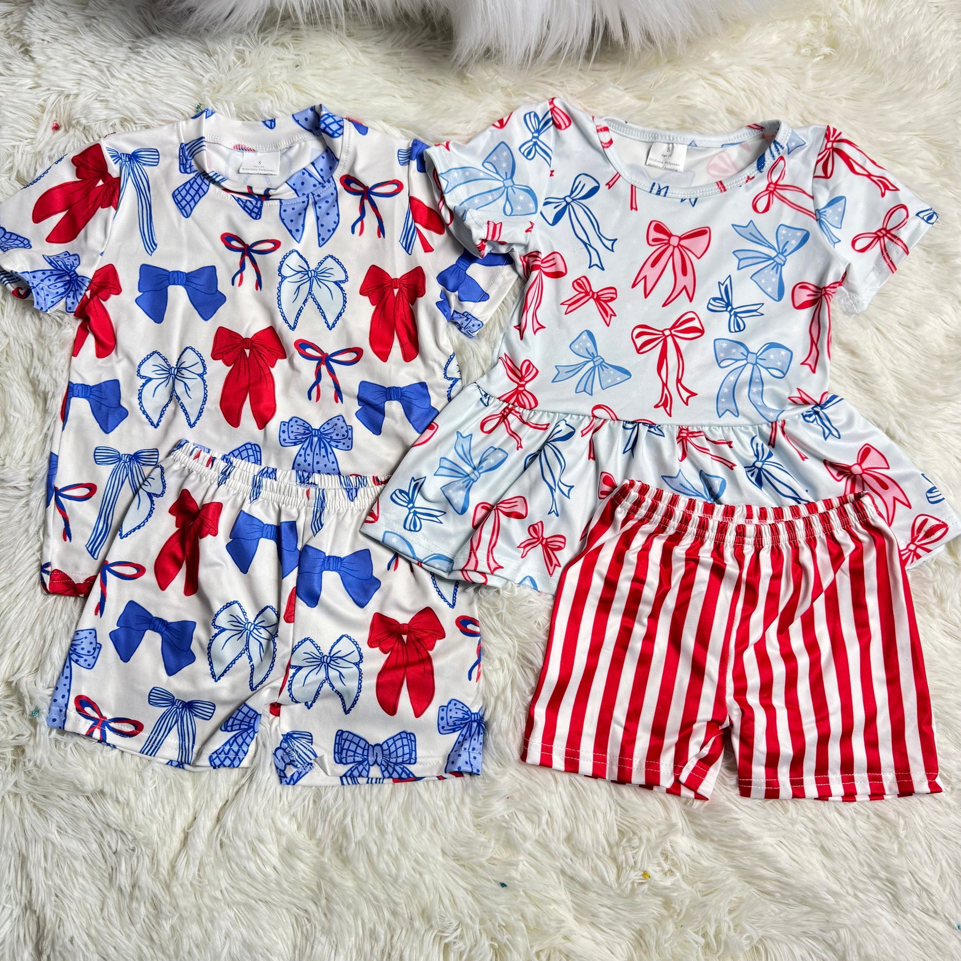 12.23 RST Sibling Baby Girls Red Blue Bows Boots Ruffle Tunic Shorts 4th of July Clothes Sets