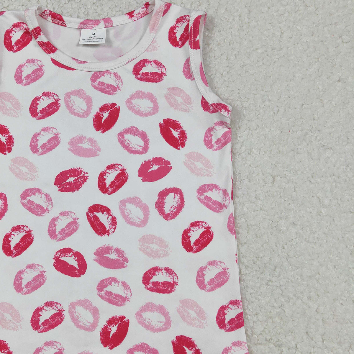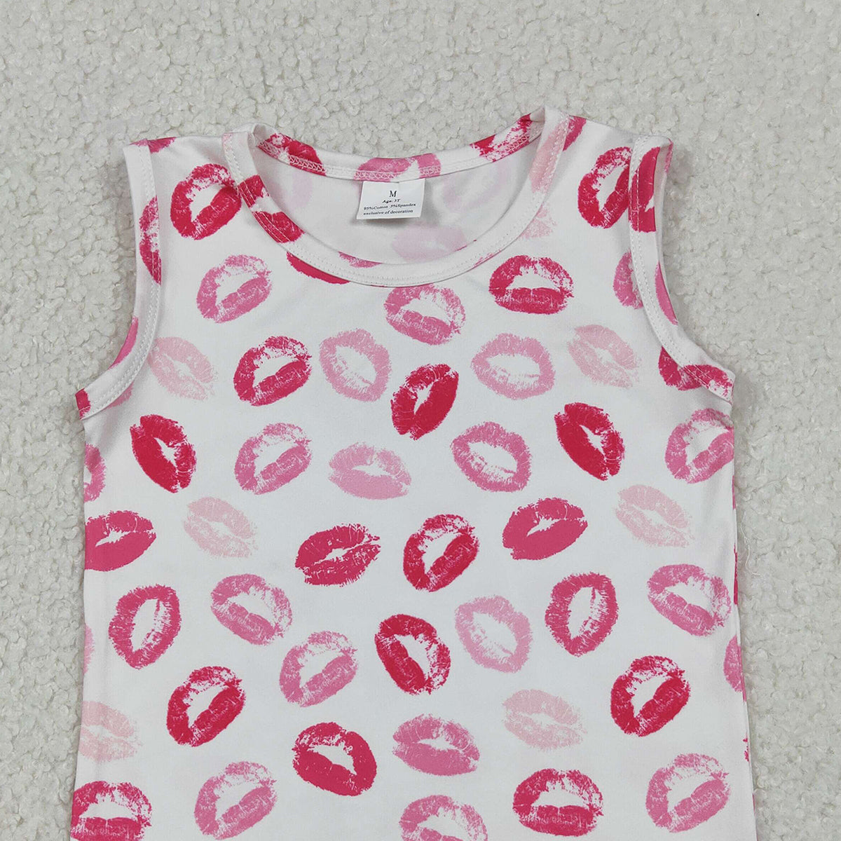 12.23 RTS NO MOQ (In stock)GT1419 Baby Girls Sleeveless Pink Mouths Valentines Vest Tops