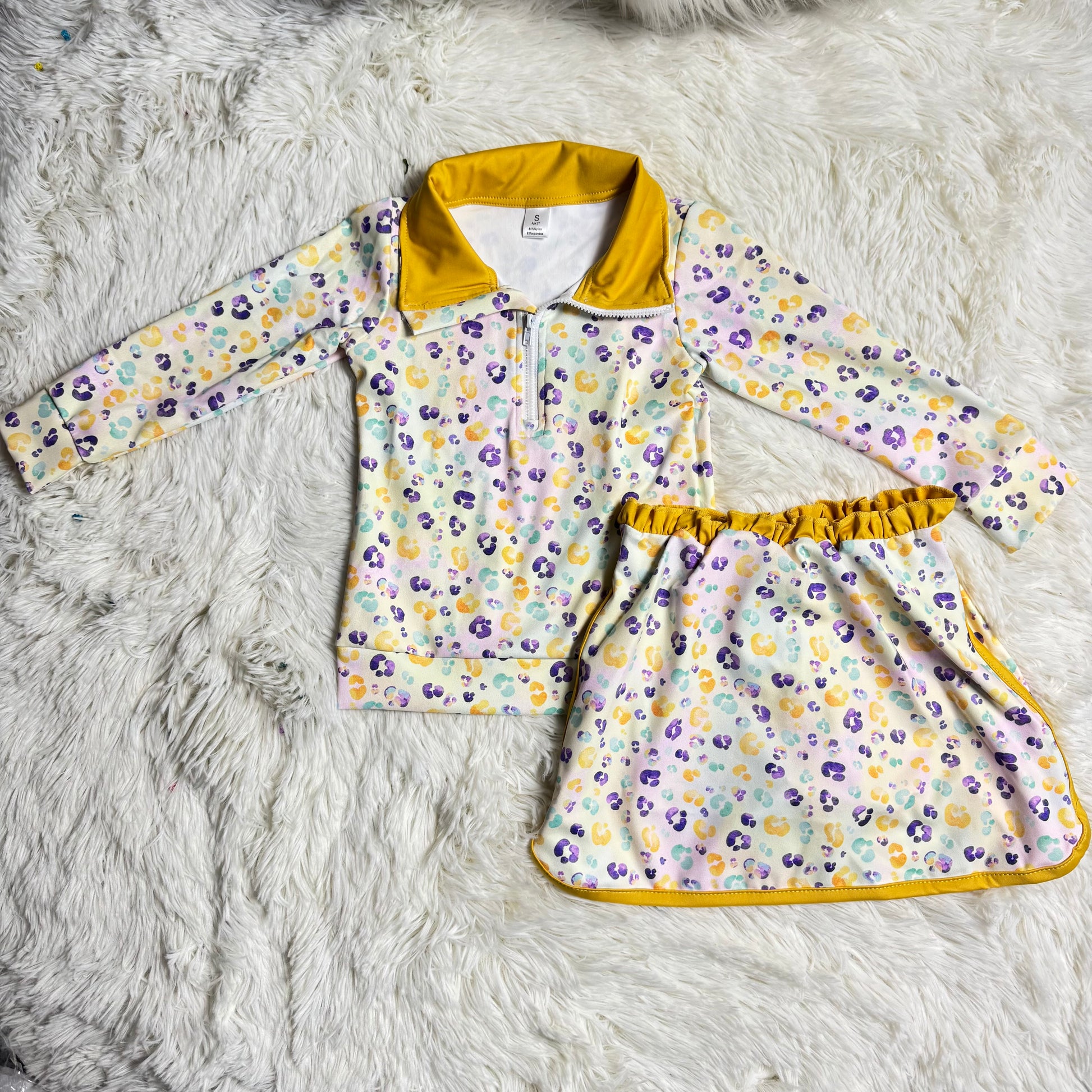 12.24 RST GLD1365 Baby Girls Mardigras Leopard Zipper Pullovers Skirt Shorts Yoga Active Clothes Set