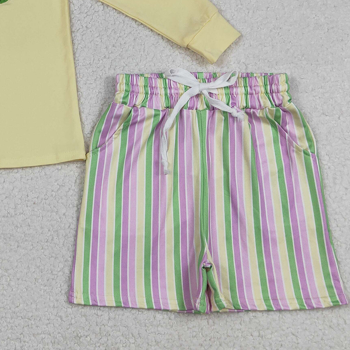 12.25 RTS NO MOQ (In stock)BLS0015 Embroidery Crayfishes Crocodile Baby Boys Mardigras Stripe Pockets Shorts Clothes Sets