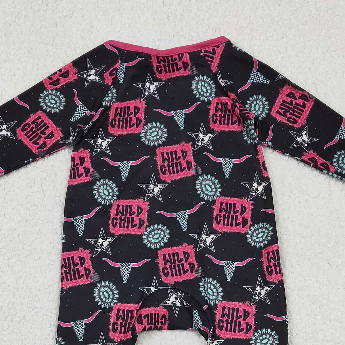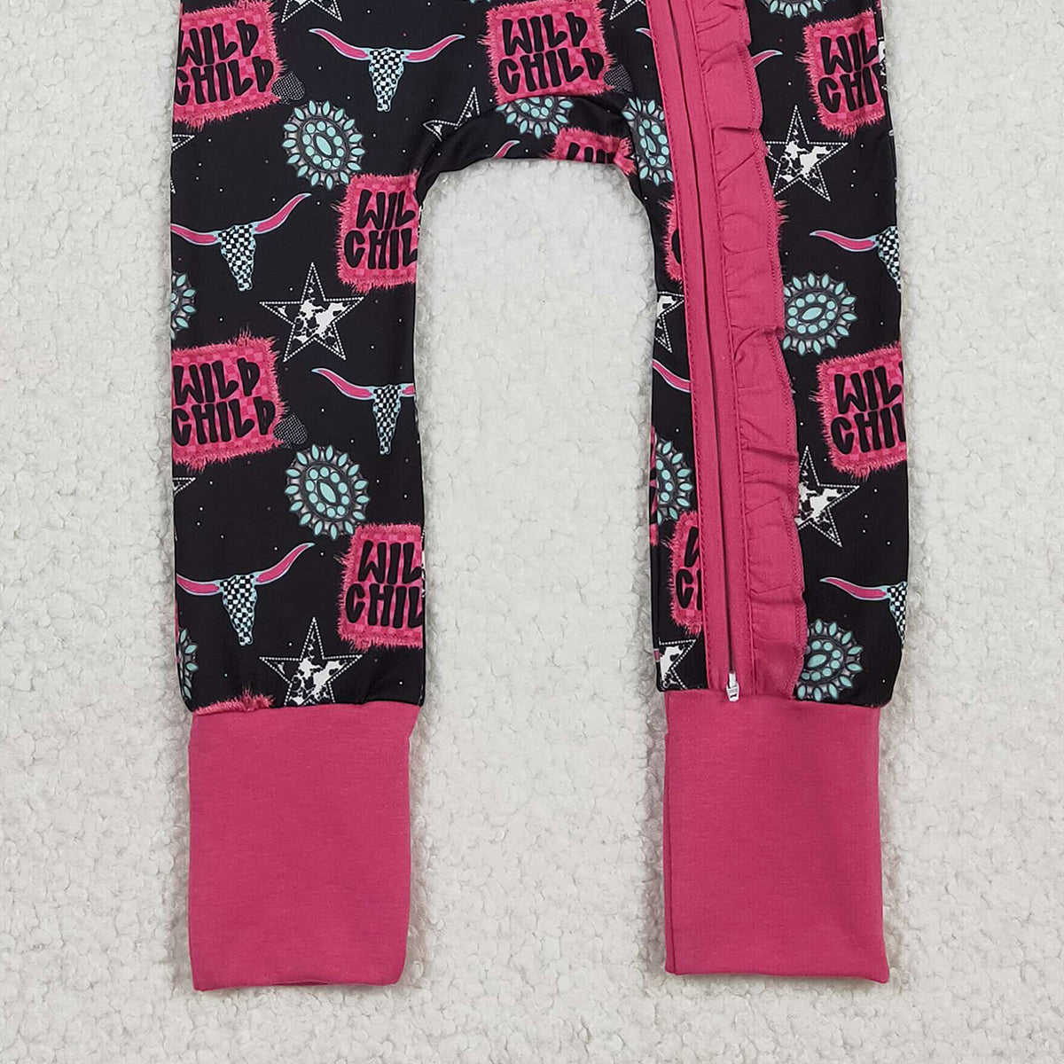 12.29 RTS NO MOQ (In stock)LR2962 Baby Girls Winter Rompers Baby Girls Wild Child Turquoises Western Two Way Ruffle Zip Convertible Rompers