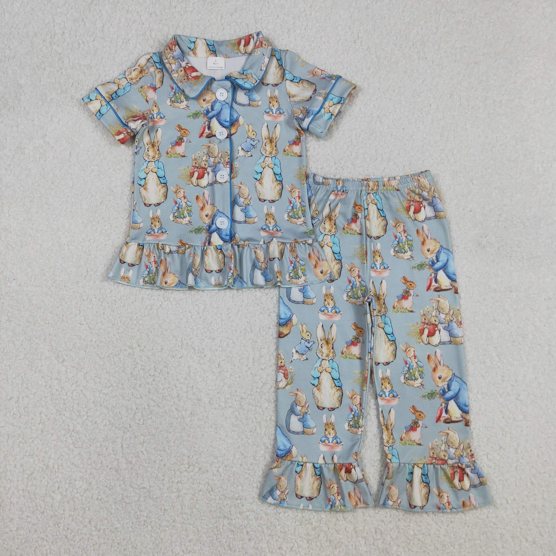 12.3 RTS NO MOQ (In stock)GSPO2097 Baby Girls Carrots Rabbits Button Top Ruffle Pants Easter Pajamas Sets