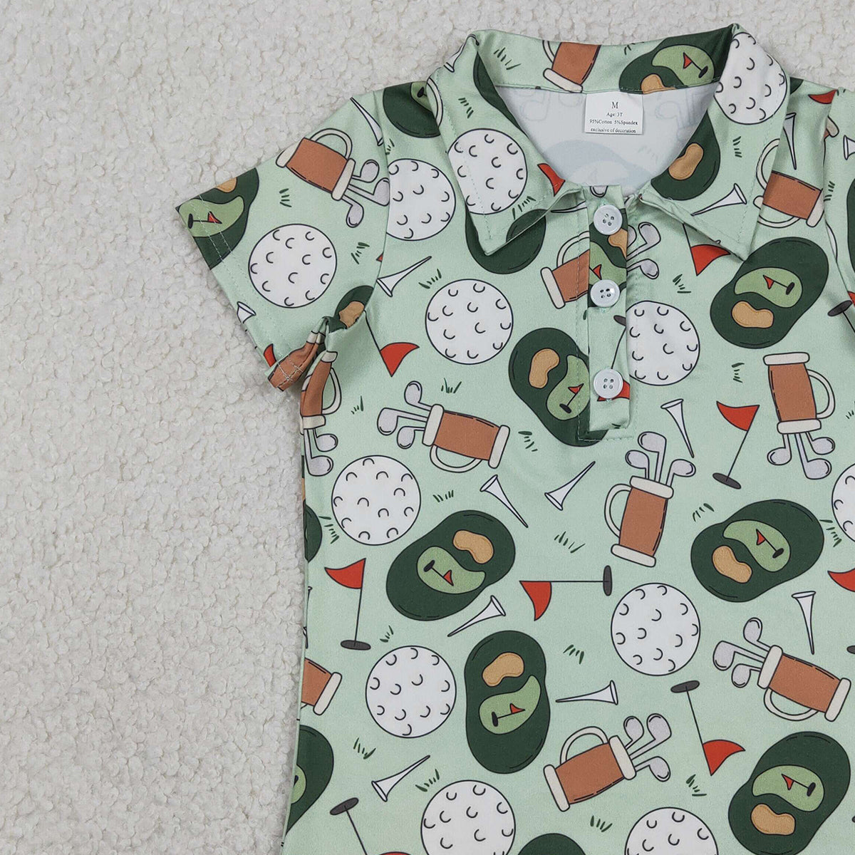 12.30 RTS NO MOQ (In stock)BT1586 Baby Boys Green Golf Flags Team Button Polo Shirts Top
