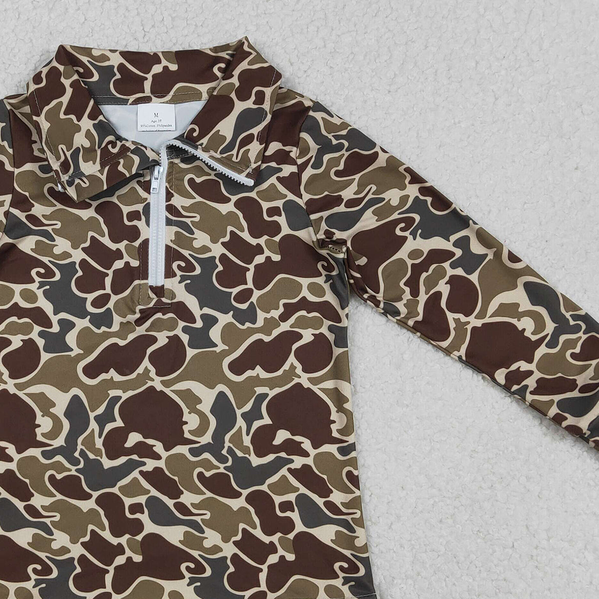 12.30 RTS NO MOQ (In stock)BT1649 Baby Boys Southern Dark Khaki Camo Zipper Pullovers Top