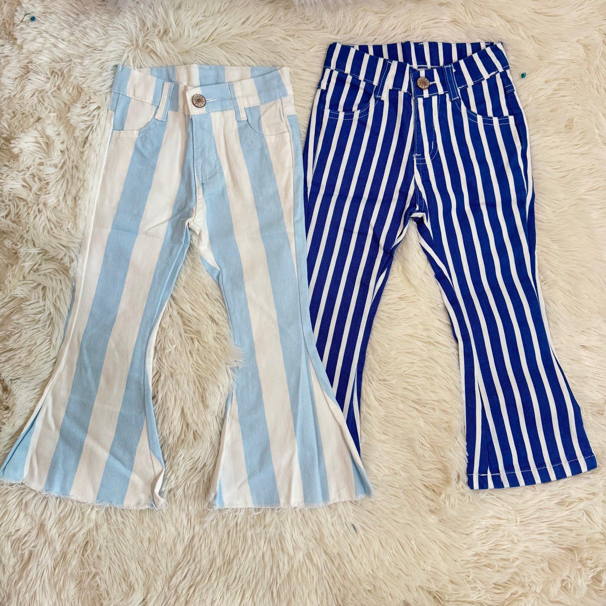 12.30 RTS Sibling Baby Girls Colorful Stripes Bell Bottom Denim Jeans Pants