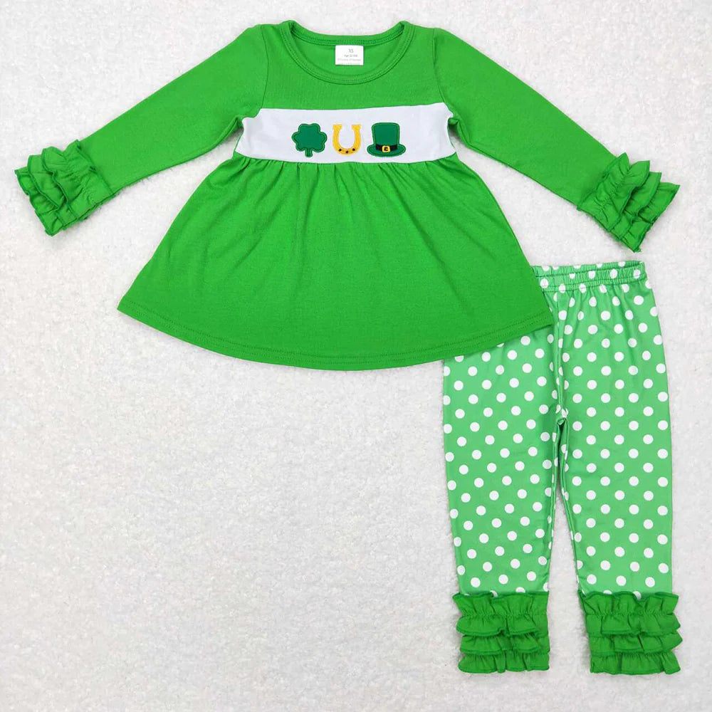 12.30 RTS Sibling Boys Baby Girls St Patrick Day Quatrefoil Outfits Clothes Sets