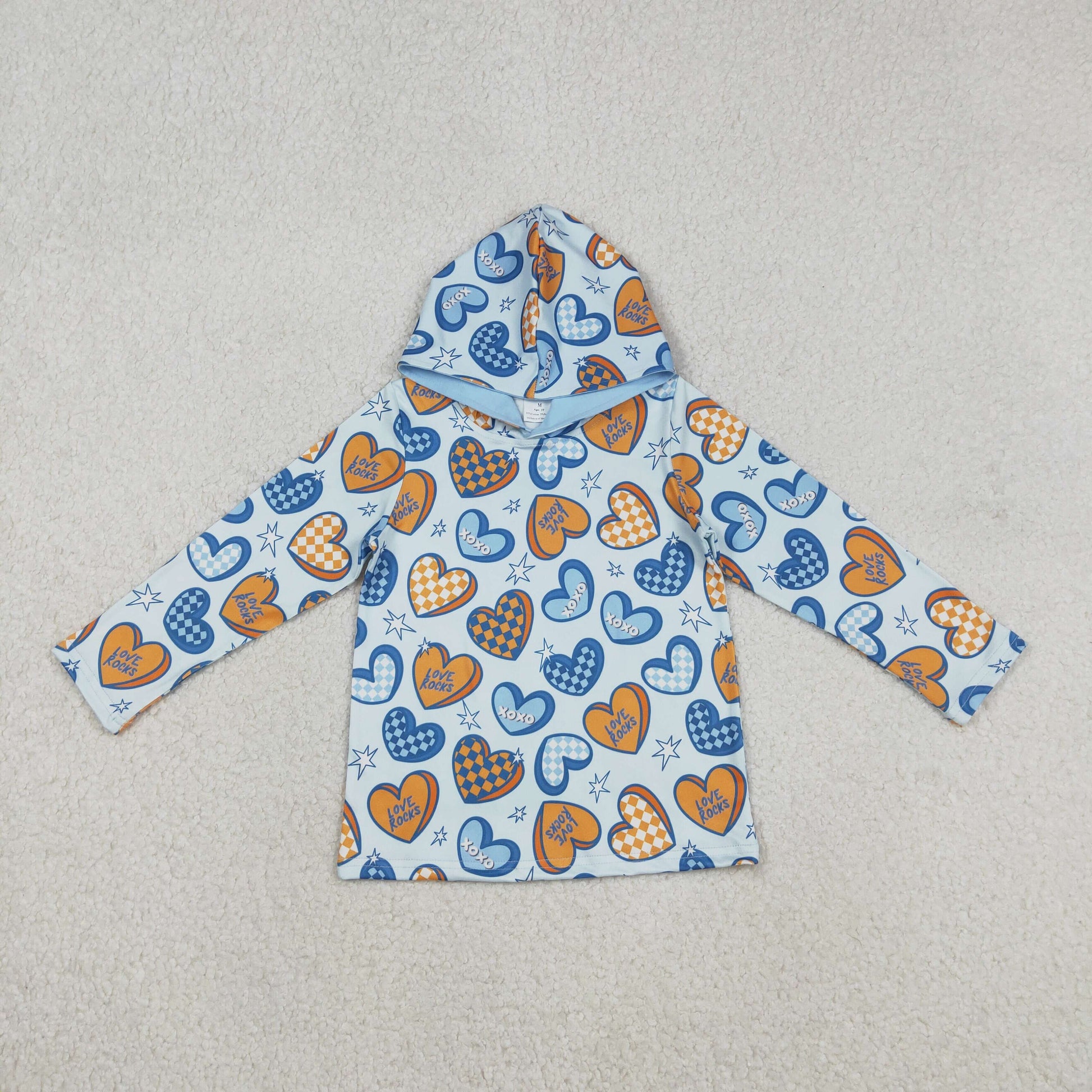 12.8 RTS NO MOQ (In stock)BT1510 Baby Boys Long Sleeve XOXO Hearts Stars Valentines Hoodies Top