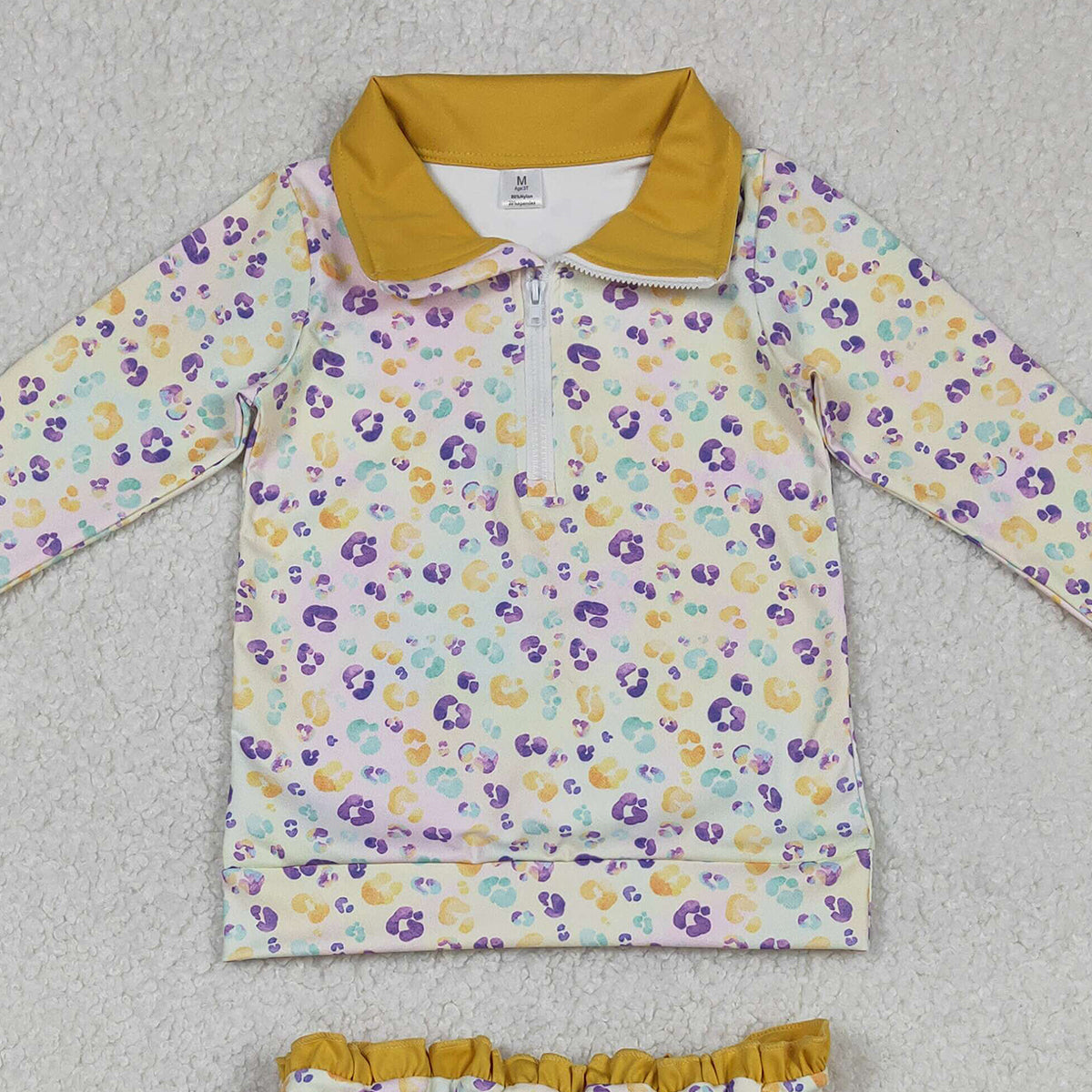 12.8 RTS NO MOQ (In stock)GLD1365 Baby Girls Mardigras Leopard Zipper Pullovers Skirt Shorts Yoga Active Clothes Set
