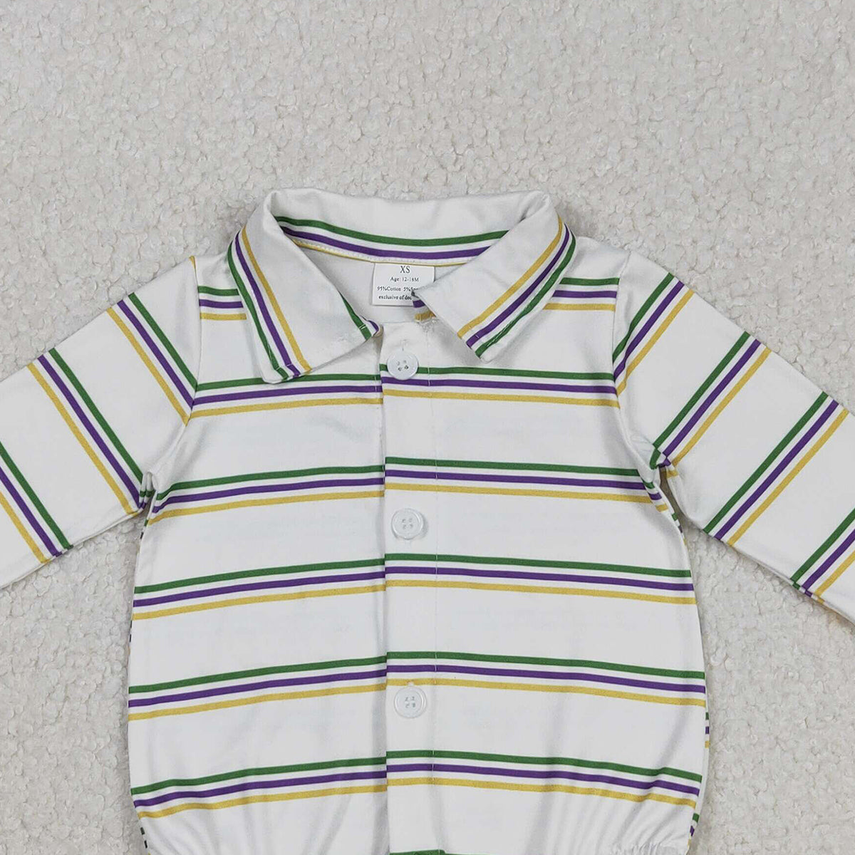 12.8 RTS NO MOQ (In stock)LR2880 Baby Girls Winter Rompers Baby Boys Long Sleeve Mardigras Stripe Button Rompers
