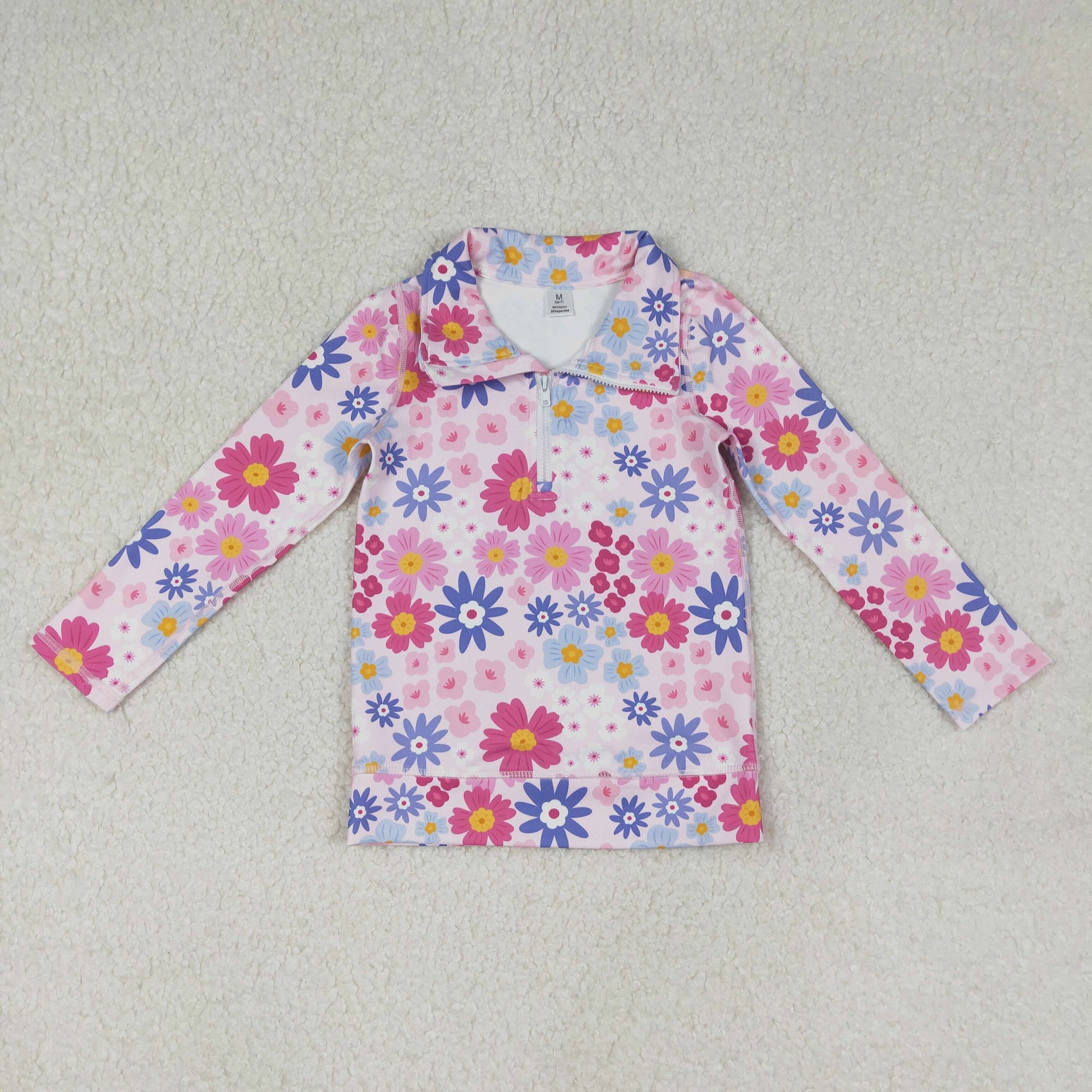 12.9 RTS NO MOQ (In stock)GT1373 Baby Girls Pink Blue Daisy Flowers Yoga Active Zipper Pullovers Top