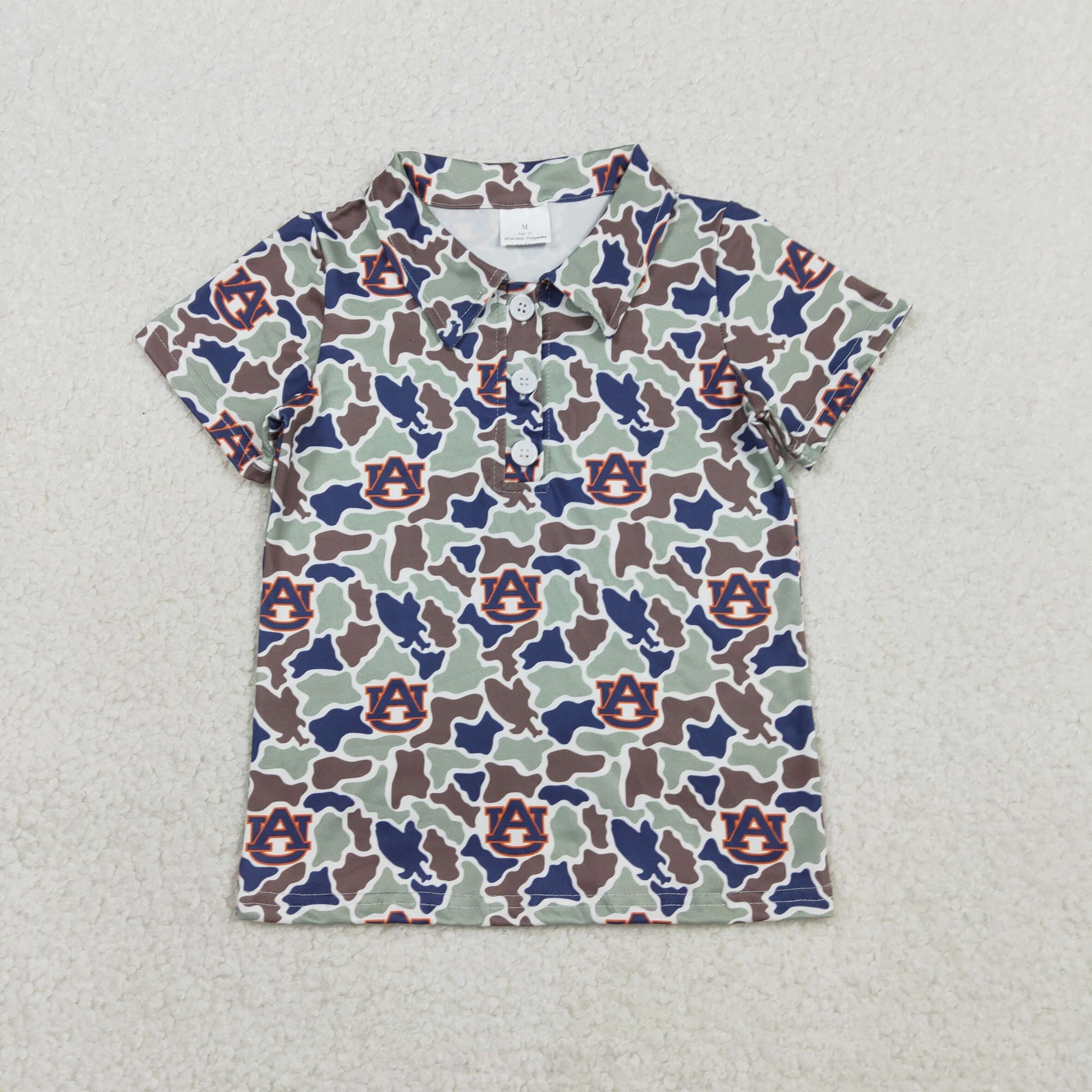 2.10 RTS NO MOQ (In stock)BT1694 Kids Fashion Clothing Baby Boys Short Sleeve Southern Camo AU Team Button Polo Shirts Top