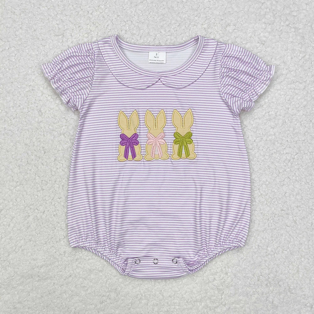 2.11 RTS Sibling Baby Girls Lavender Stripes Bunny Rompers Dresses