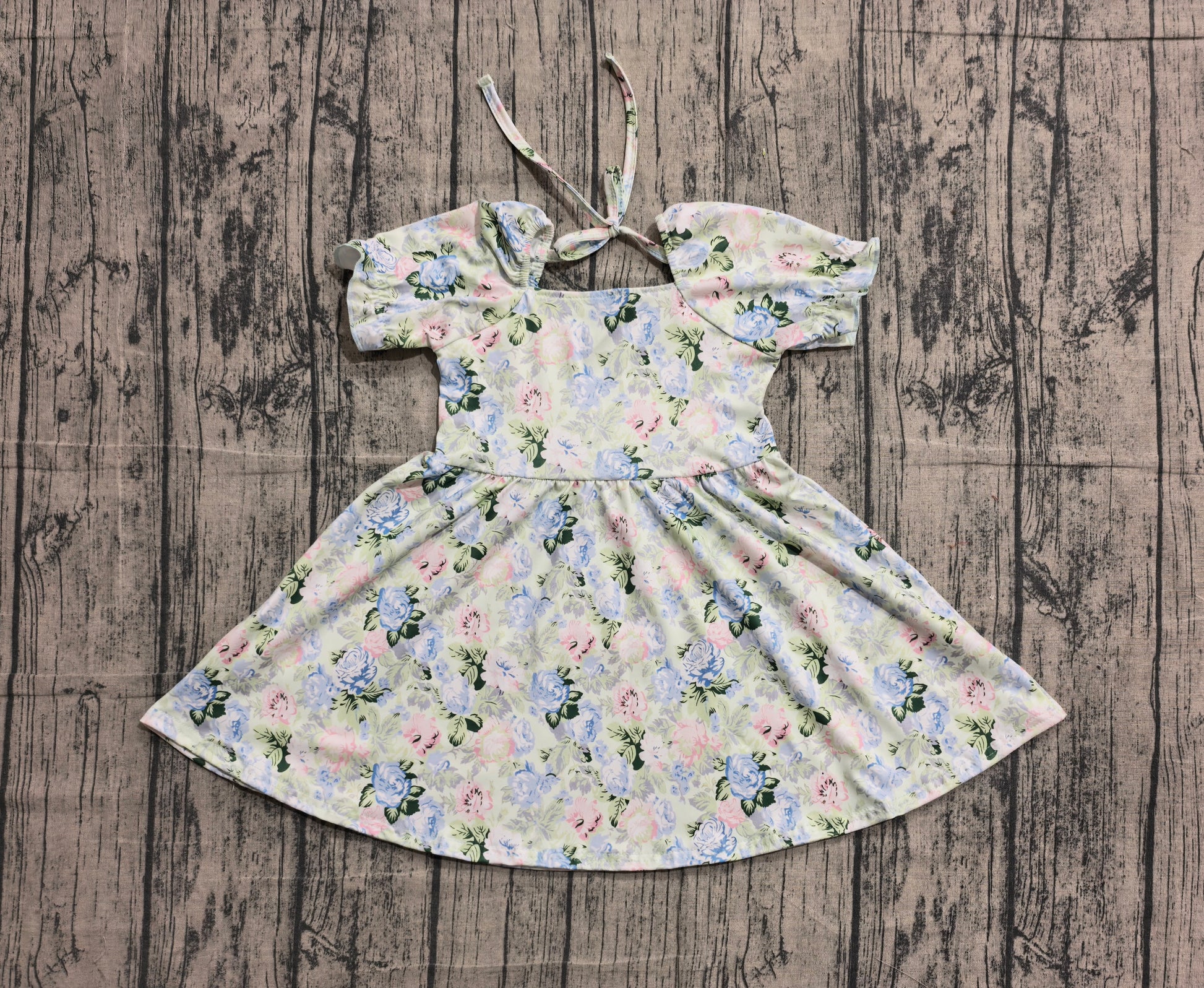 2.2 GSD3615 Sample No Moq Baby Girls Short Ruffle Sleeve Colorful Flowers Knee Length Dresses