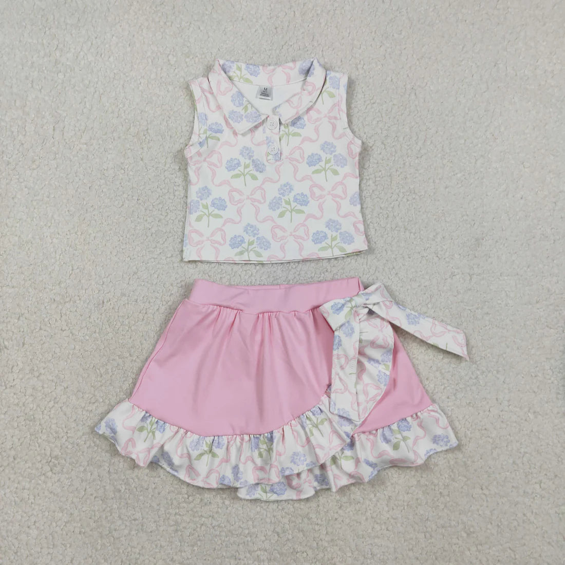 2.2 RTS Sibling Baby Girls Bows Checked Button Vests Ruffle Skirt Shorts Yoga Active Clothes Sets