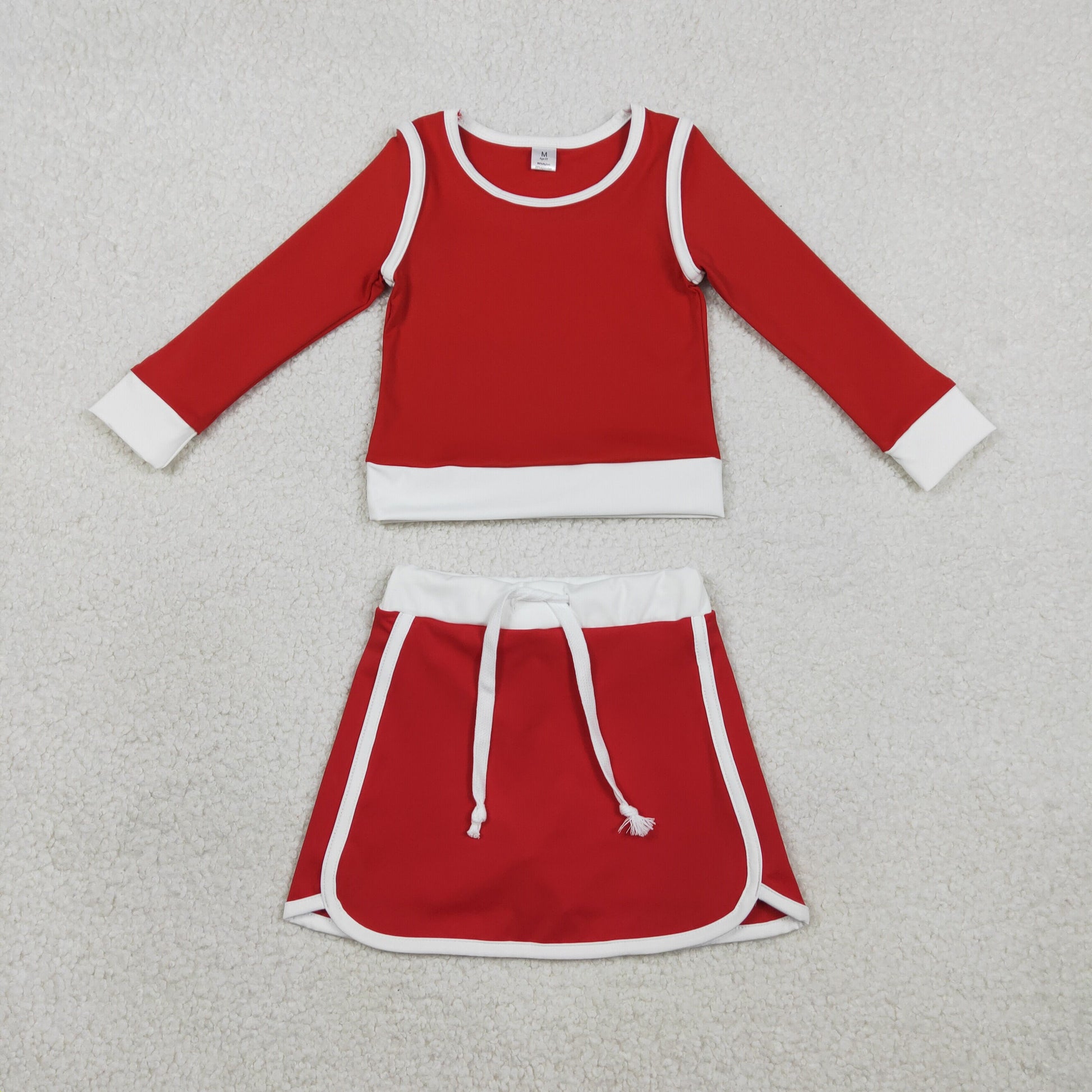 2.3 RTS NO MOQ (In stock)GLD1482 Baby Girls Red Long Sleeve Top Skirts Shorts Yoga Active Clothes Sets