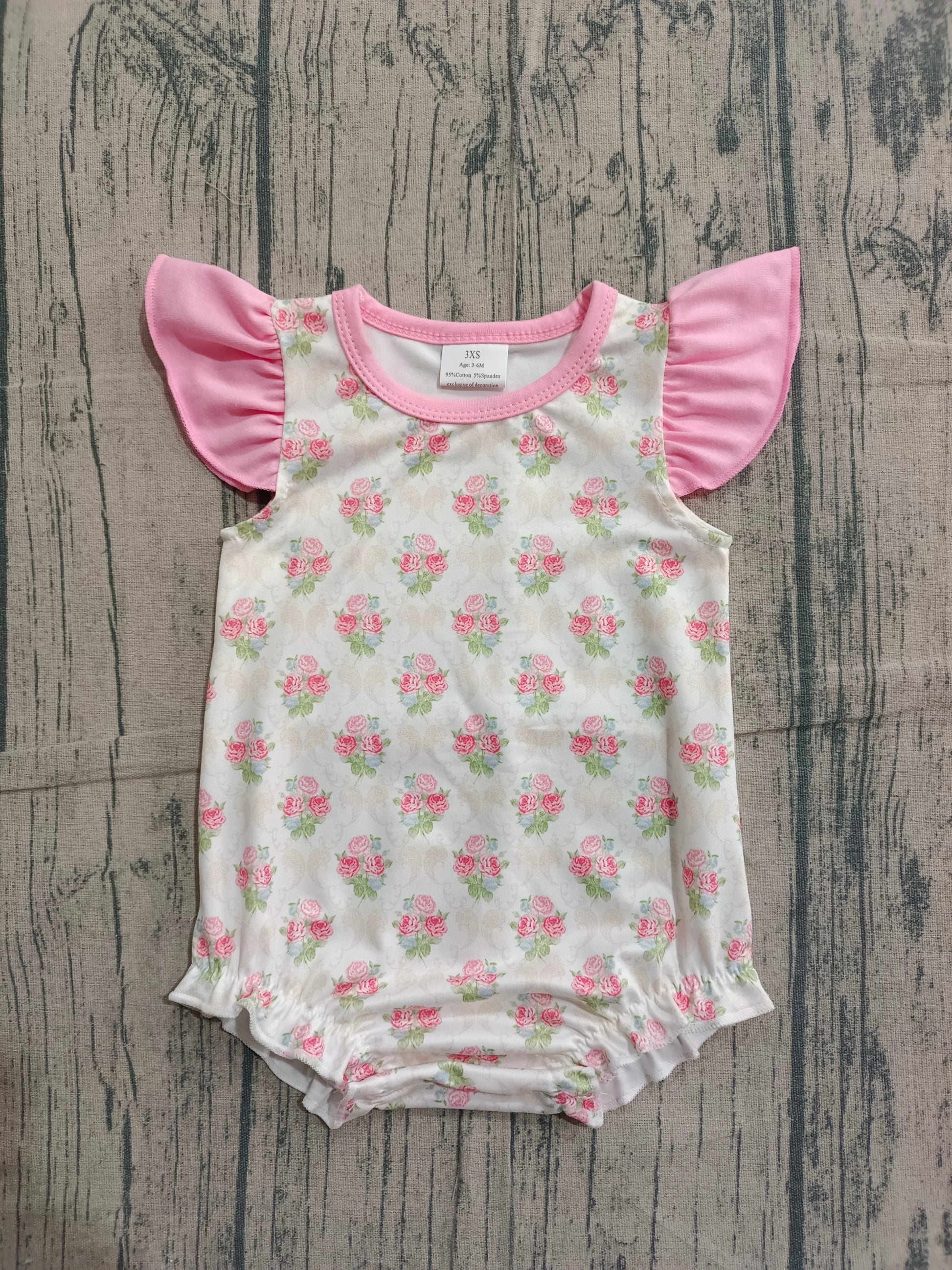 2.3 SR3677 Sample No Moq Baby Girls Flutter Sleeve Flowers Checked Ruffle Rompers