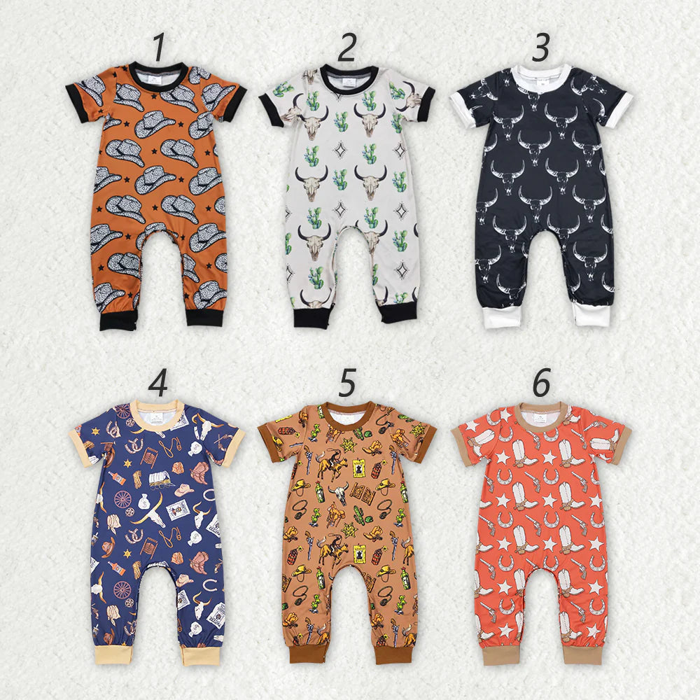 2.4 RTS Sibling Baby Girls Boys Western Cow Short Sleeve Rompers