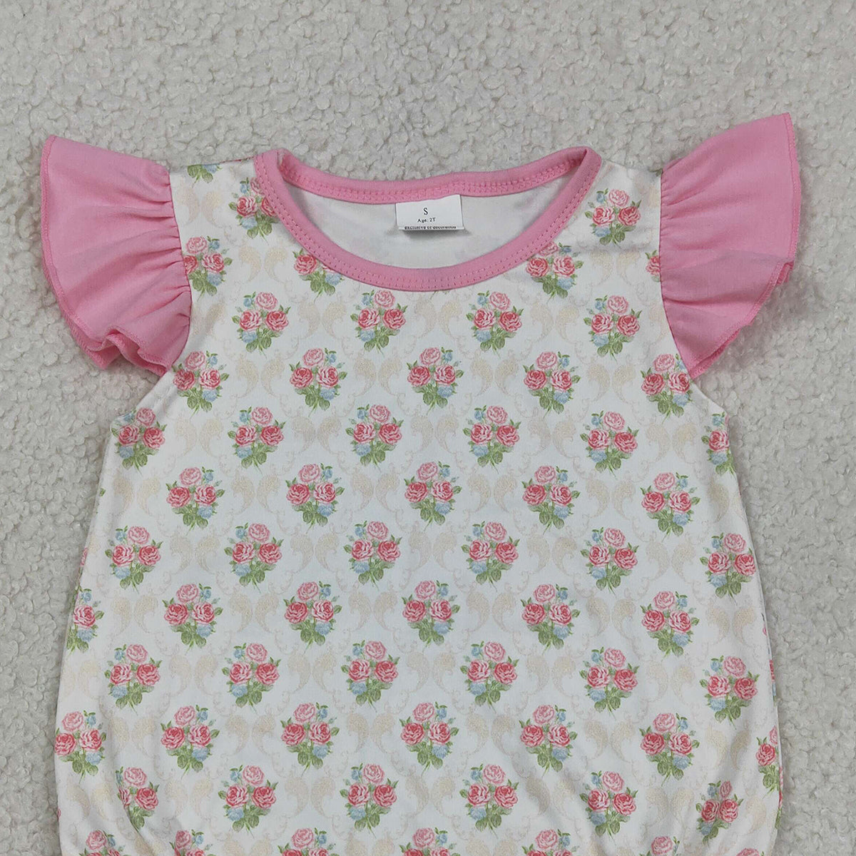 3.13 RTS NO MOQ (In stock)SR3677 Children's Fashion Romper Baby Girls Pink Flutter Sleeve Flowers Checked Ruffle Rompers