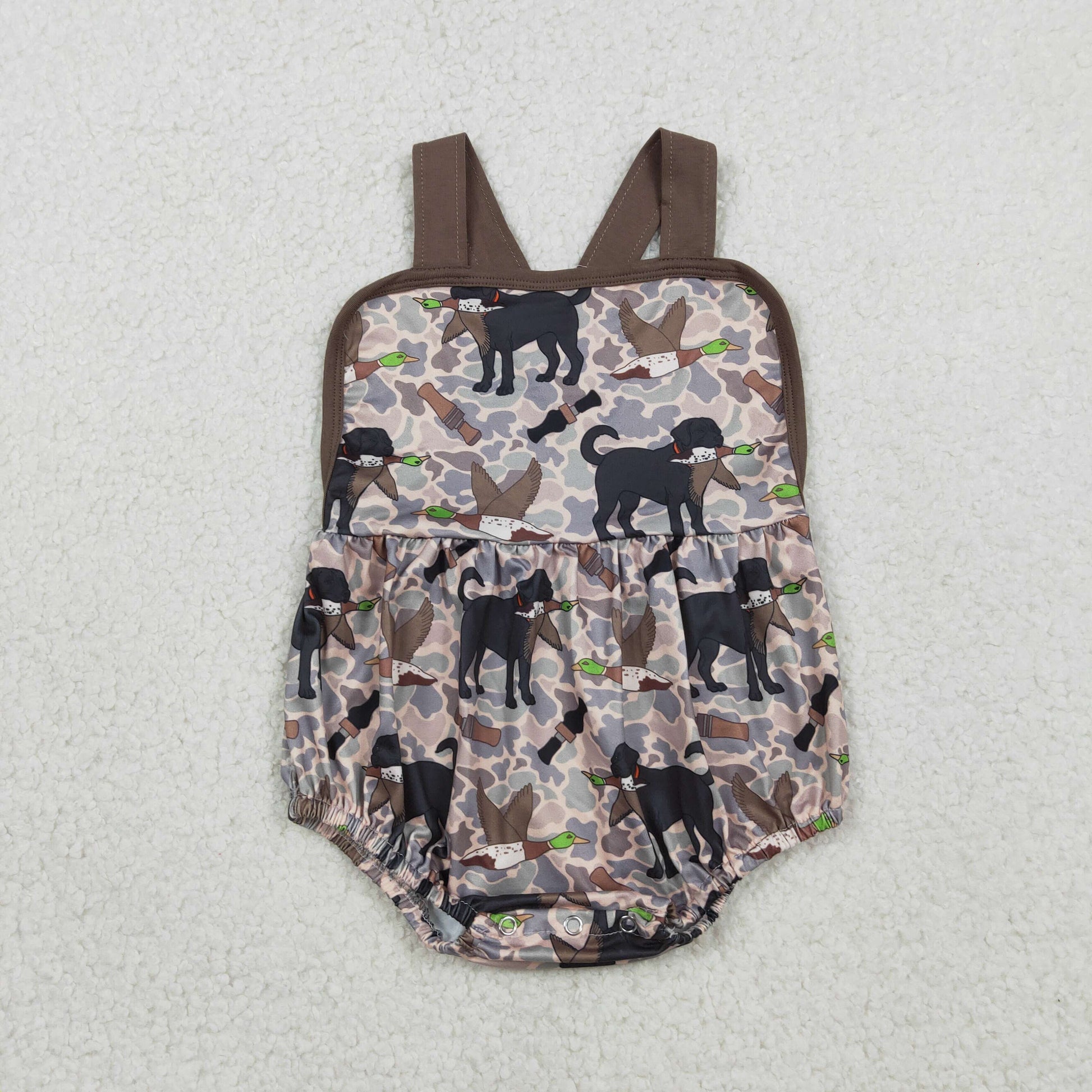 3.3 RTS NO MOQ (In stock)SR3928 Children's Fashion Romper Baby Boys Strap Dog Ducks Camo Hunting Rompers
