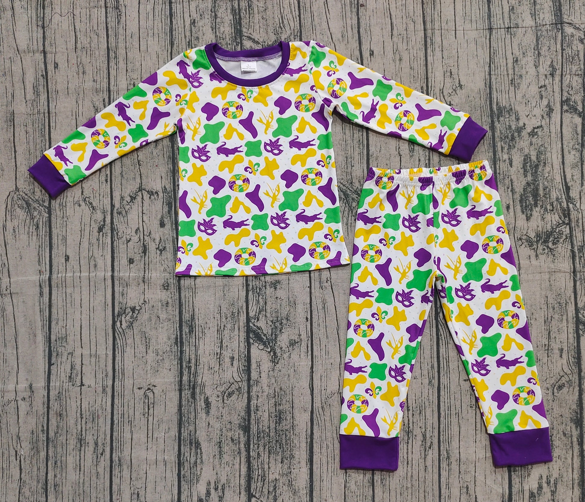 9.19 BLP1273 Sample No Moq Fast Coming Baby Boys Purple Yellow Green Camo Crayfishes Mardi Gras Pajamas Sets