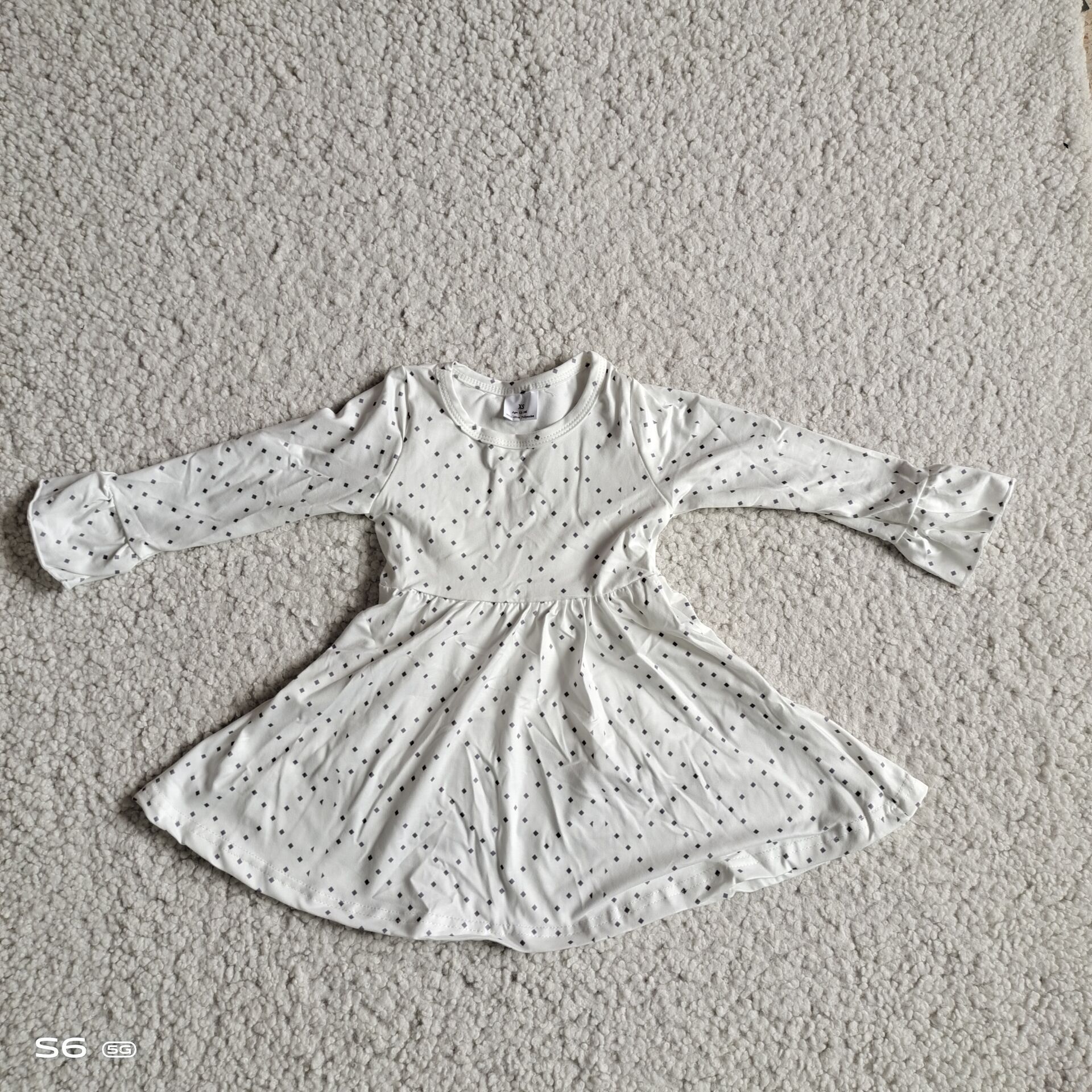 9.20 RTS NO MOQ(In stock)G2-24-9*/; Baby Girls Winter Dress White long-sleeved dress with gray small squares