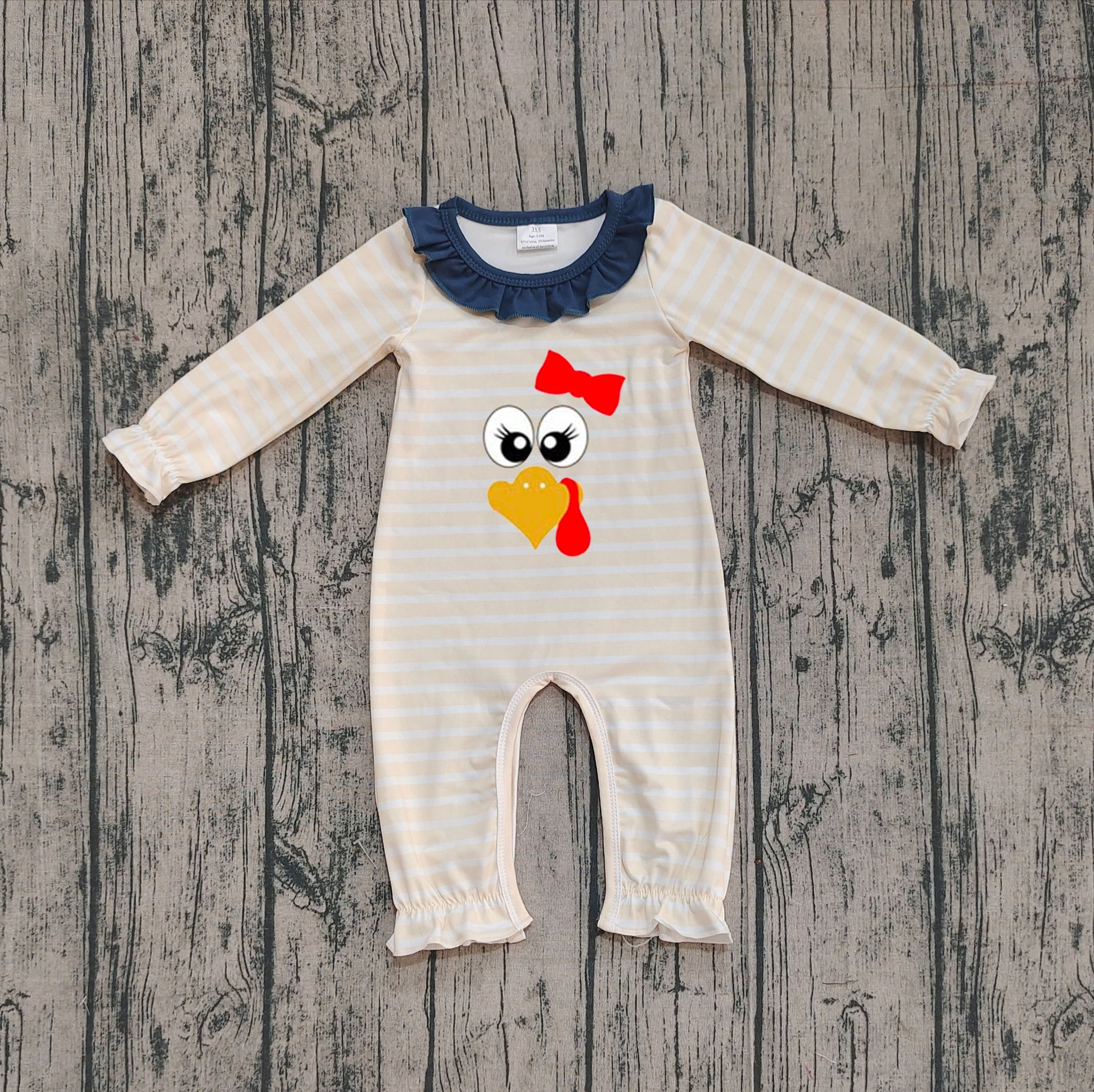 9.23 LR2424 Sample No Moq Fast Coming Embroidery Baby Girls Long Sleeves Turkey Ruffle Pant Rompers