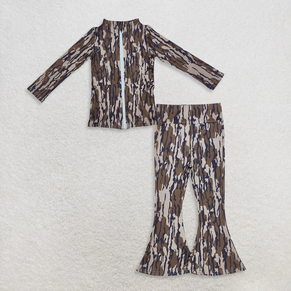 9.23 RTS NO MOQ (In stock)GT0850 + P0590 Baby Girls Yoga Active Wear Zip Jackets Tops Bell Bottom Pants
