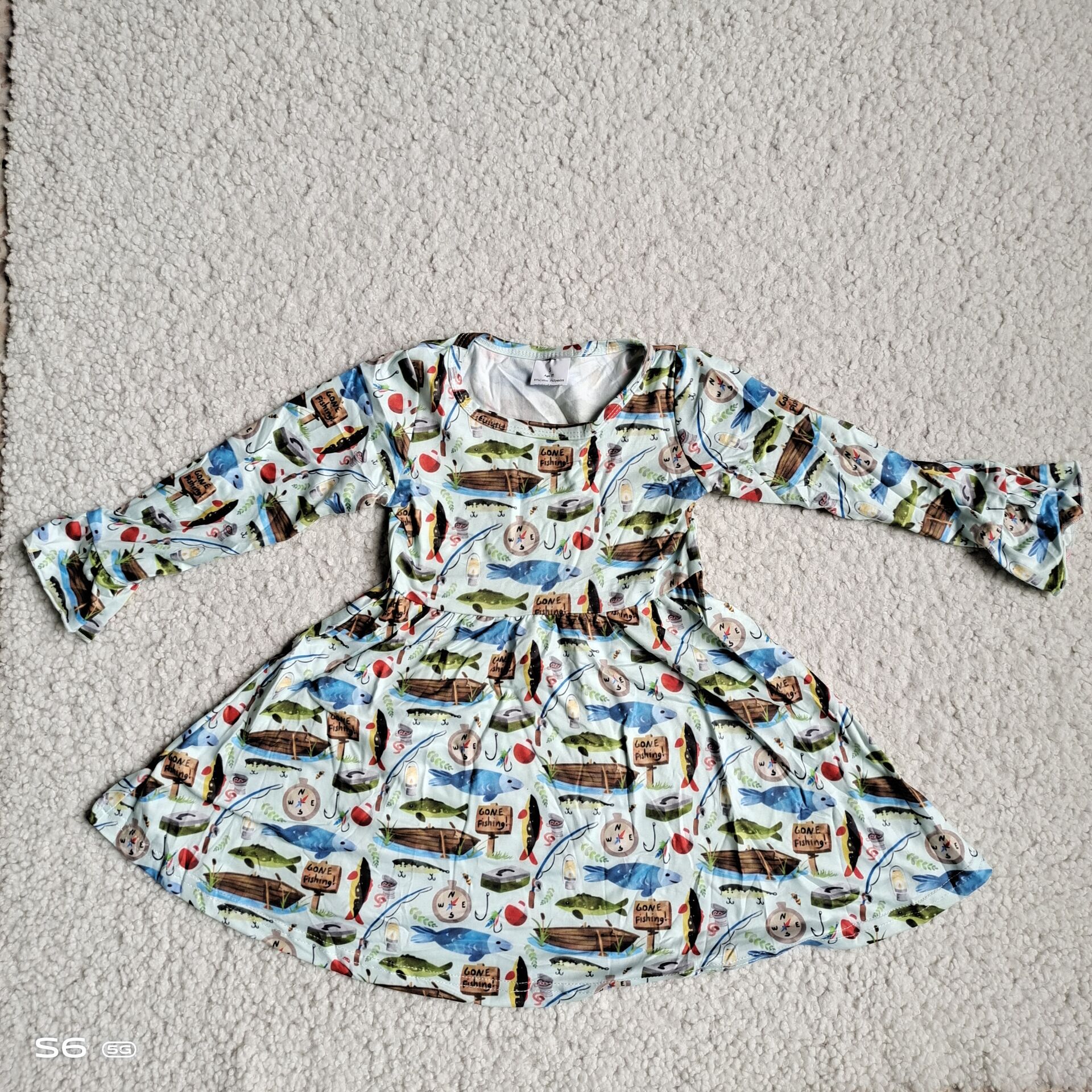 9.25 RTS NO MOQ(In stock)G4-12-1, Baby Girls Winter Dress Small boat fish long sleeve dress