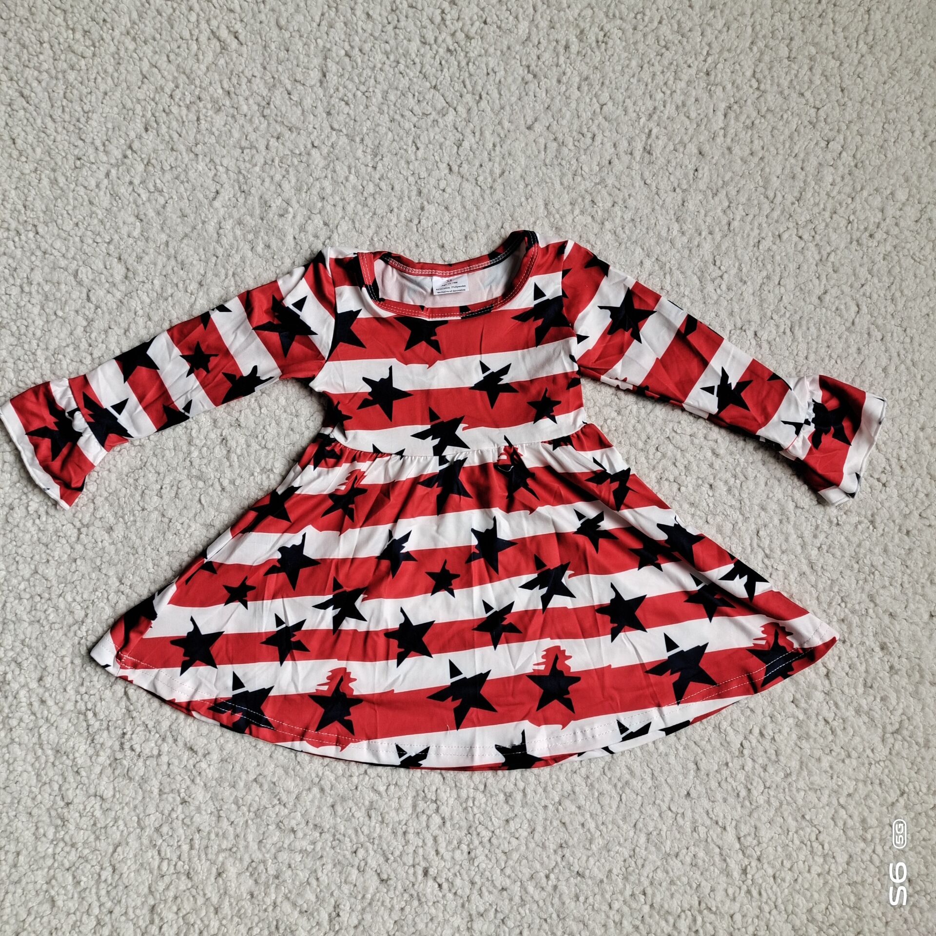 9.25 RTS NO MOQ(In stock)G4-12-7; Baby Girls Winter Dress Five-pointed star red and white striped long-sleeved dress