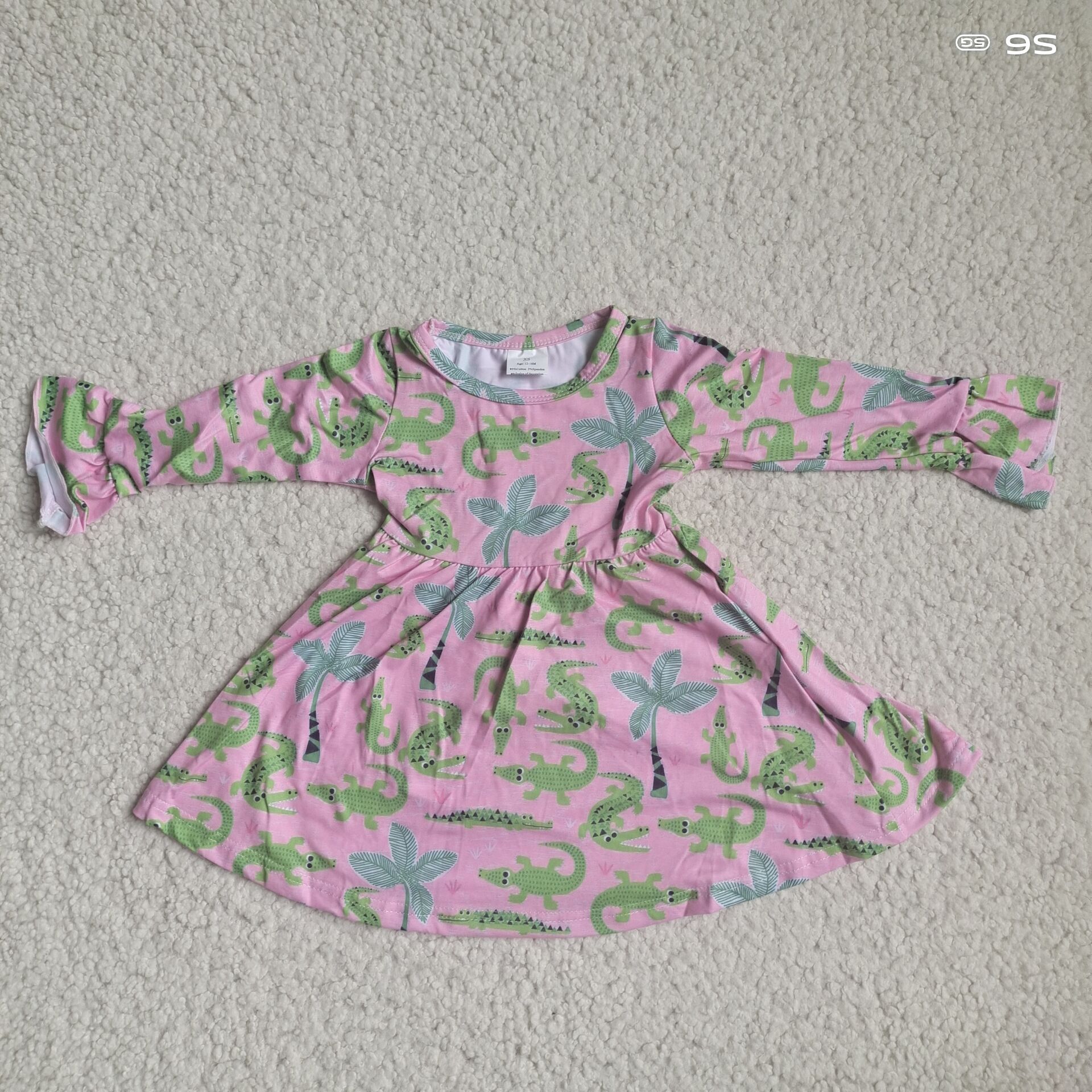 9.25 RTS NO MOQ(In stock)G4-12-7.. Baby Girls Winter Dress Green alligator pink long-sleeved dress