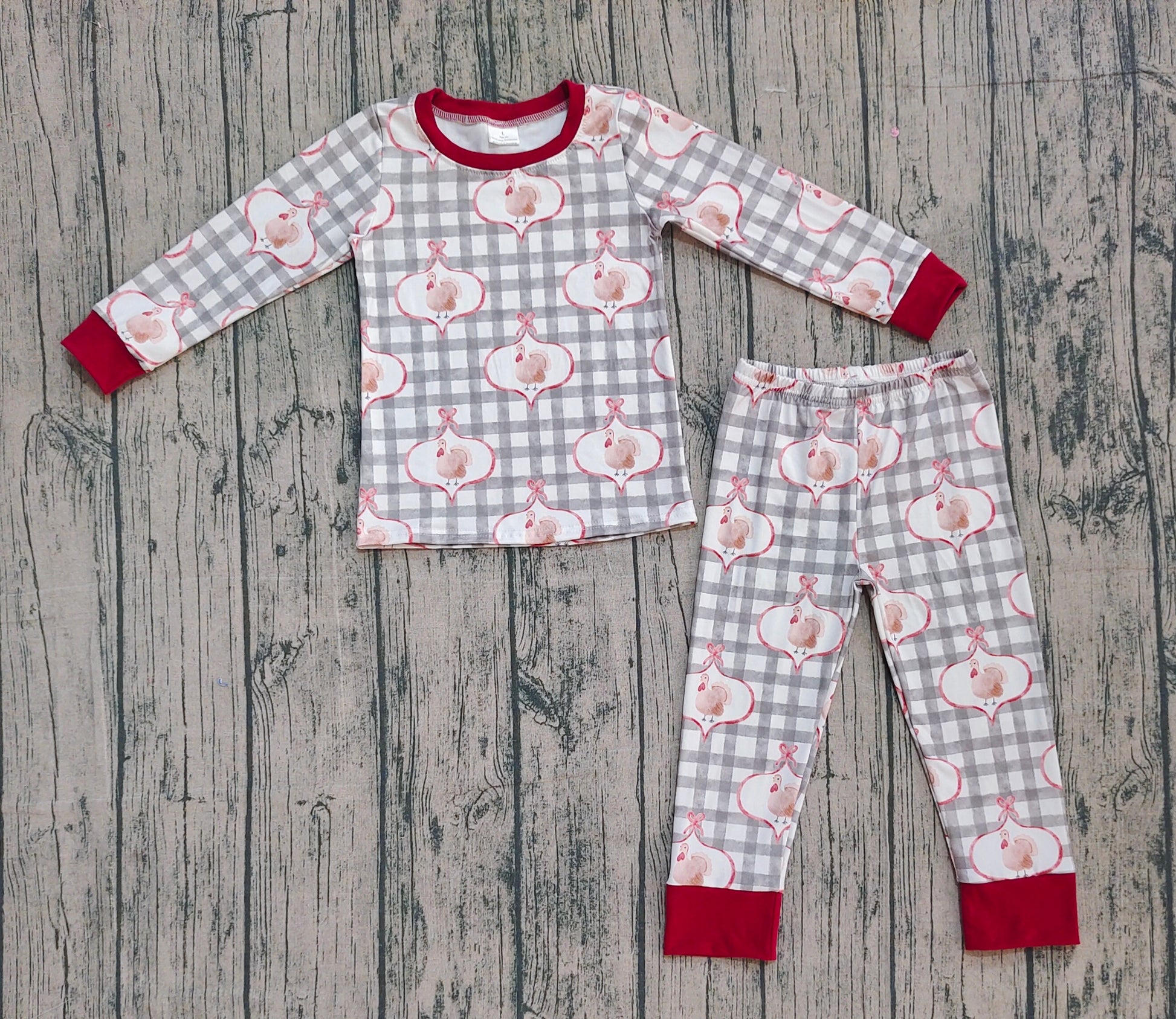 9.26 GLP2885 XS-3XL Sample No Moq Baby Girls Green Checked Turkey Top Pant Thanksgiving Pajamas Sets