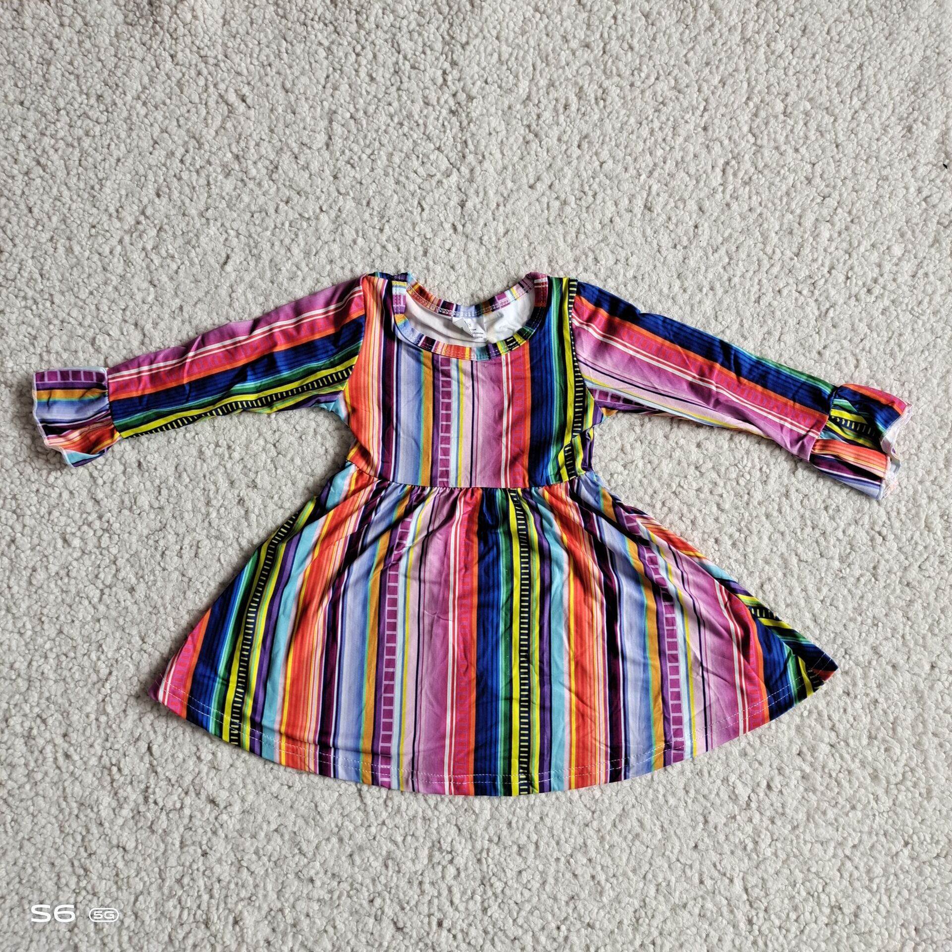 9.26 RTS NO MOQ(In stock)G2-20-8*/* Baby Girls Winter Dress Colorful striped flared long-sleeved dress