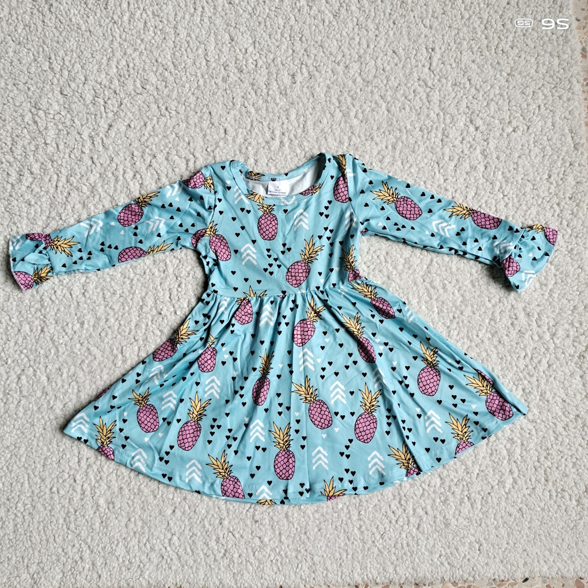 9.26 RTS NO MOQ(In stock)G2-24-8*,, Baby Girls Winter Dress Purple Pineapple Heart Long Sleeve Dress