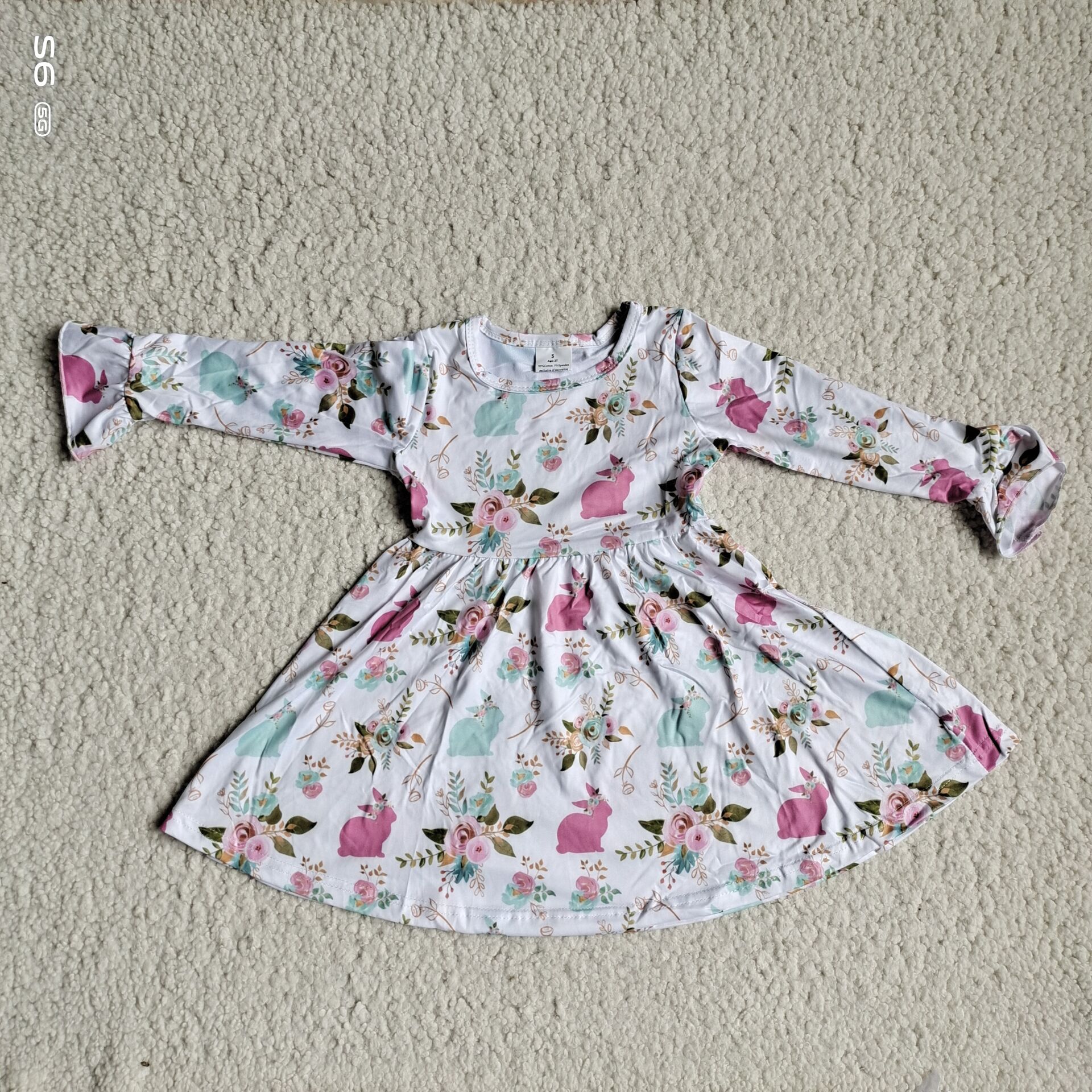 9.26 RTS NO MOQ(In stock)G3-12*] Baby Girls Winter Dress Purple Bunny Rose Long Sleeve Dress