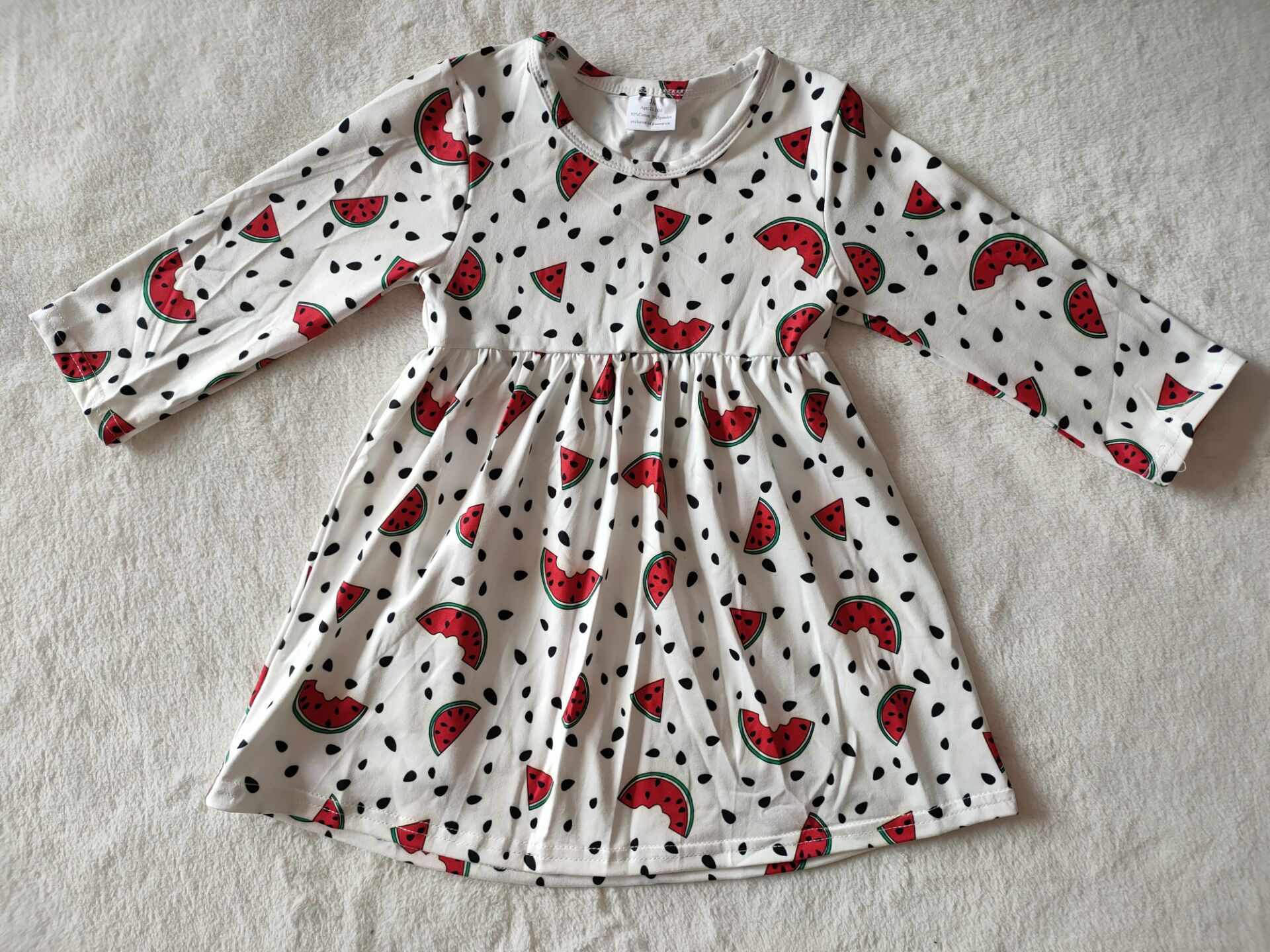 9.26 RTS NO MOQ(In stock)G3-4-1. Baby Girls Winter Dress Watermelon White Straight Sleeve Skirt