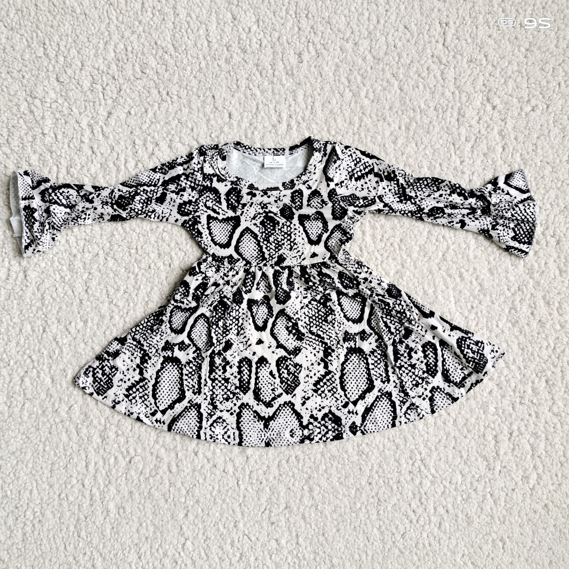 9.26 RTS NO MOQ(In stock)G3-8-8*'. Baby Girls Winter Dress Black and white snake print long-sleeved dress