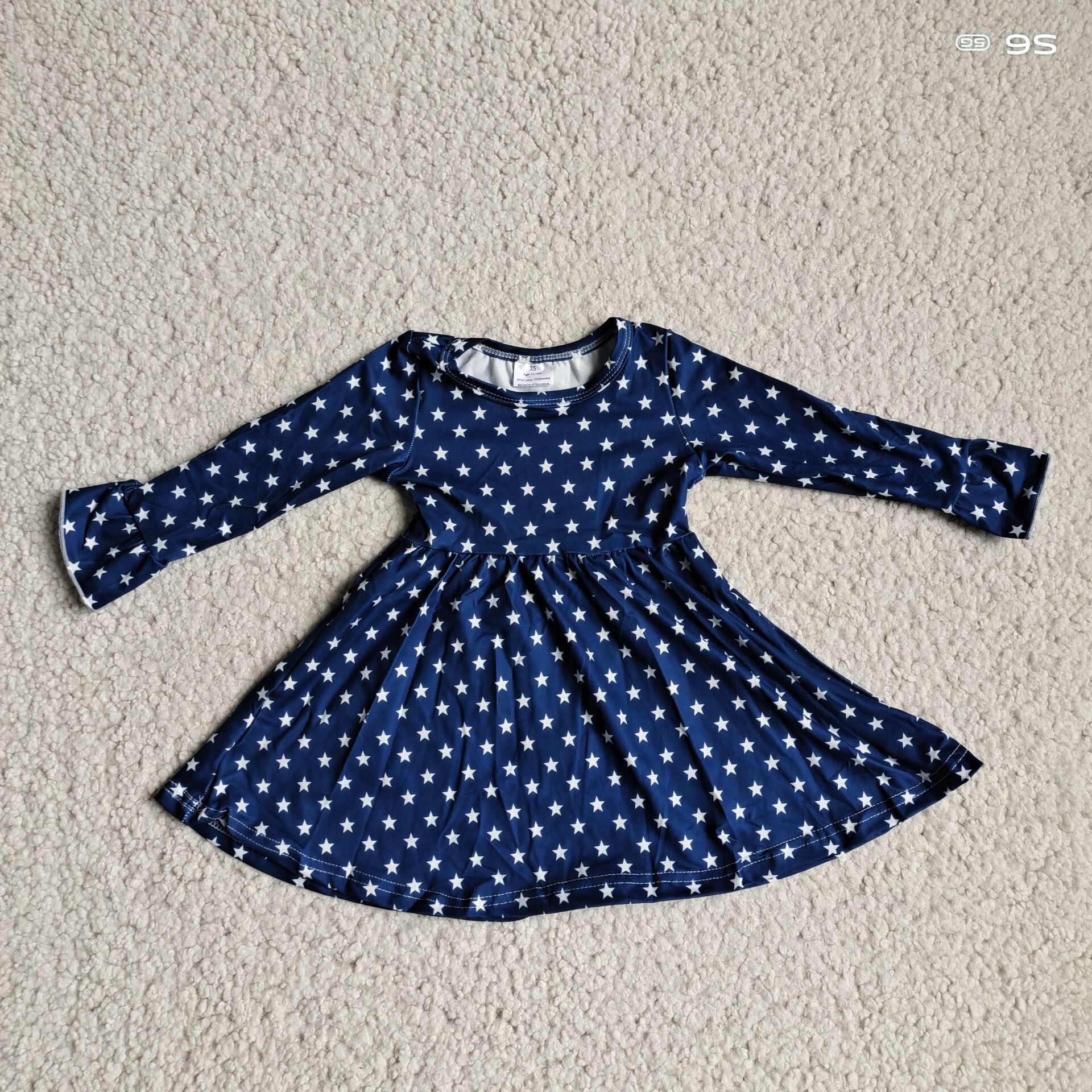 9.27 RTS NO MOQ(In stock)G3-4-3,. Baby Girls Winter Dress Small five-pointed star black blue long-sleeved dress