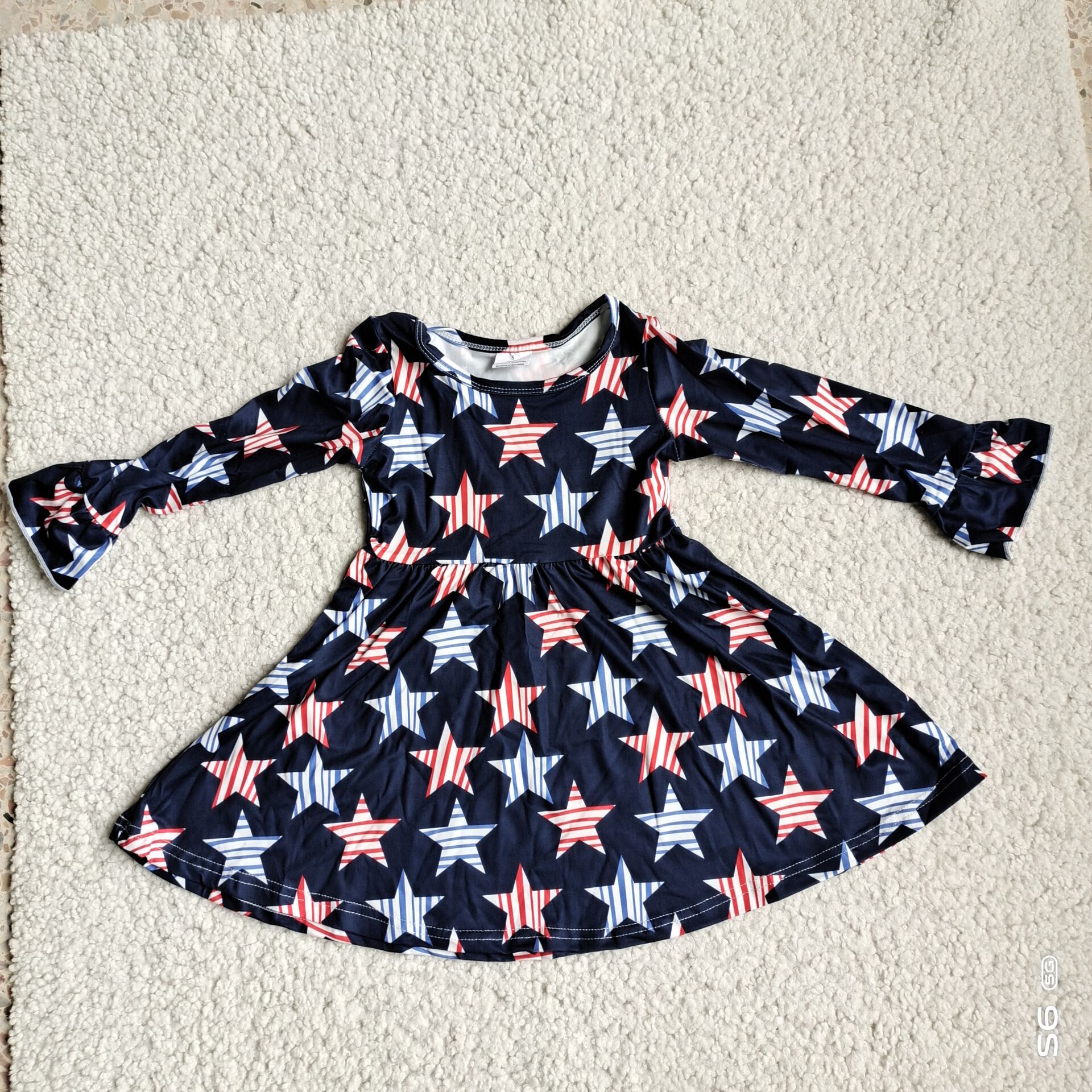 9.27 RTS NO MOQ(In stock)G4-12-2, Baby Girls Winter Dress Black long-sleeved dress with red and blue stripes and stars