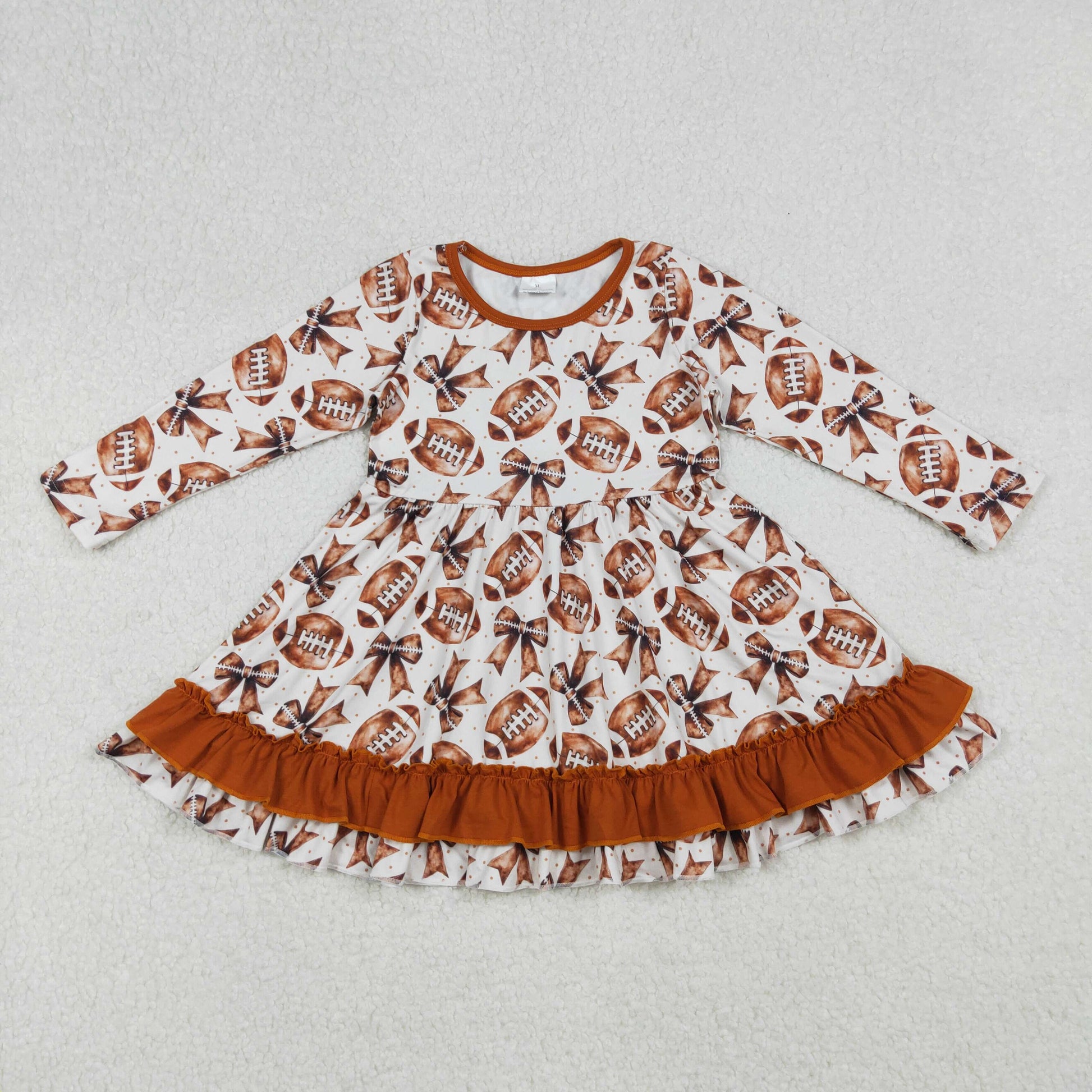 9.27 RTS NO MOQ (In stock)GLD1268 Baby Girls Winter Dress Baby Girls Footballs Bows Plaid Team Ruffle Knee Length Dresses