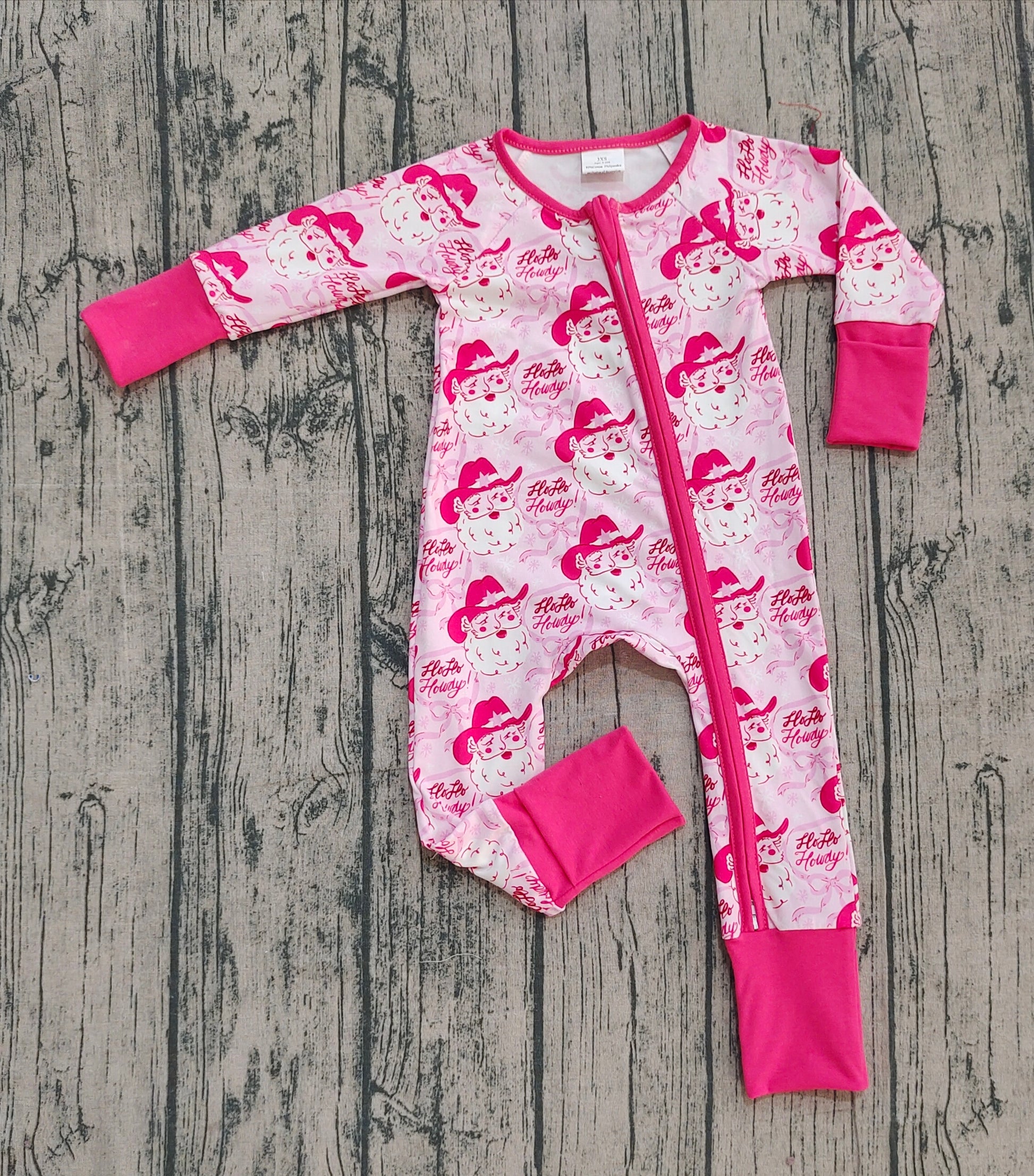 9.29 LR2243 Sample No Moq Baby Girls Pink Bows Santa Christmas Zipper Footie Rompers