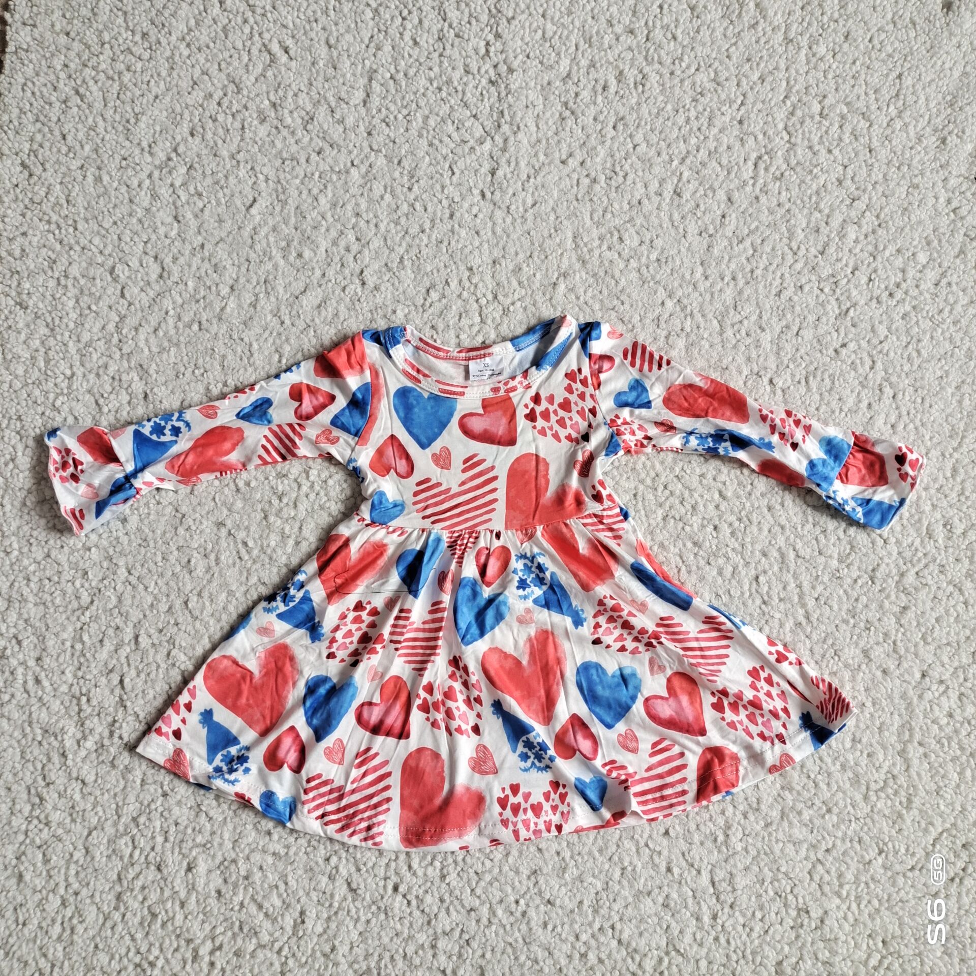 9.29 RTS NO MOQ(In stock)G2-24-3;' Baby Girls Winter Dress Red and blue heart striped long-sleeved dress