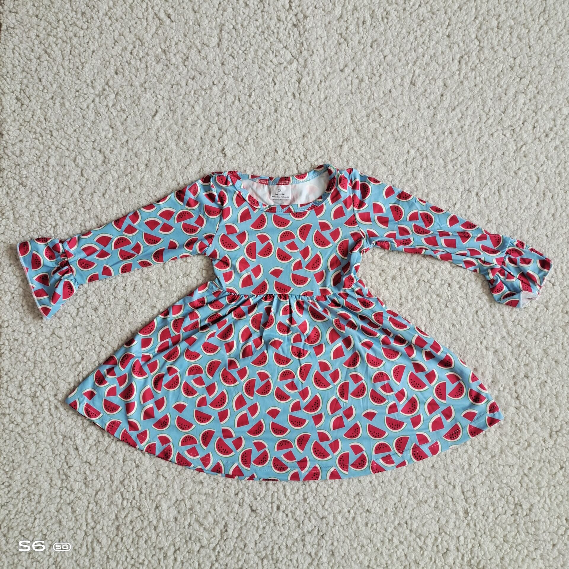 9.29 RTS NO MOQ(In stock)G2-24-4*'; Baby Girls Winter Dress Watermelon blue long-sleeved dress