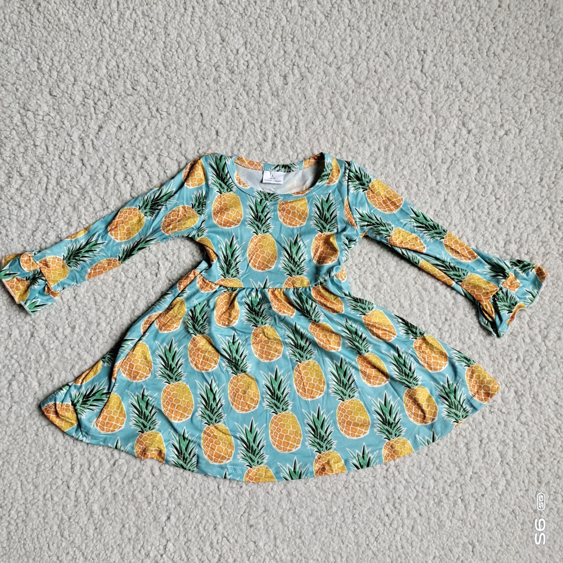 9.29 RTS NO MOQ(In stock)G2-24*;-. Baby Girls Winter Dress Pineapple green long-sleeved dress