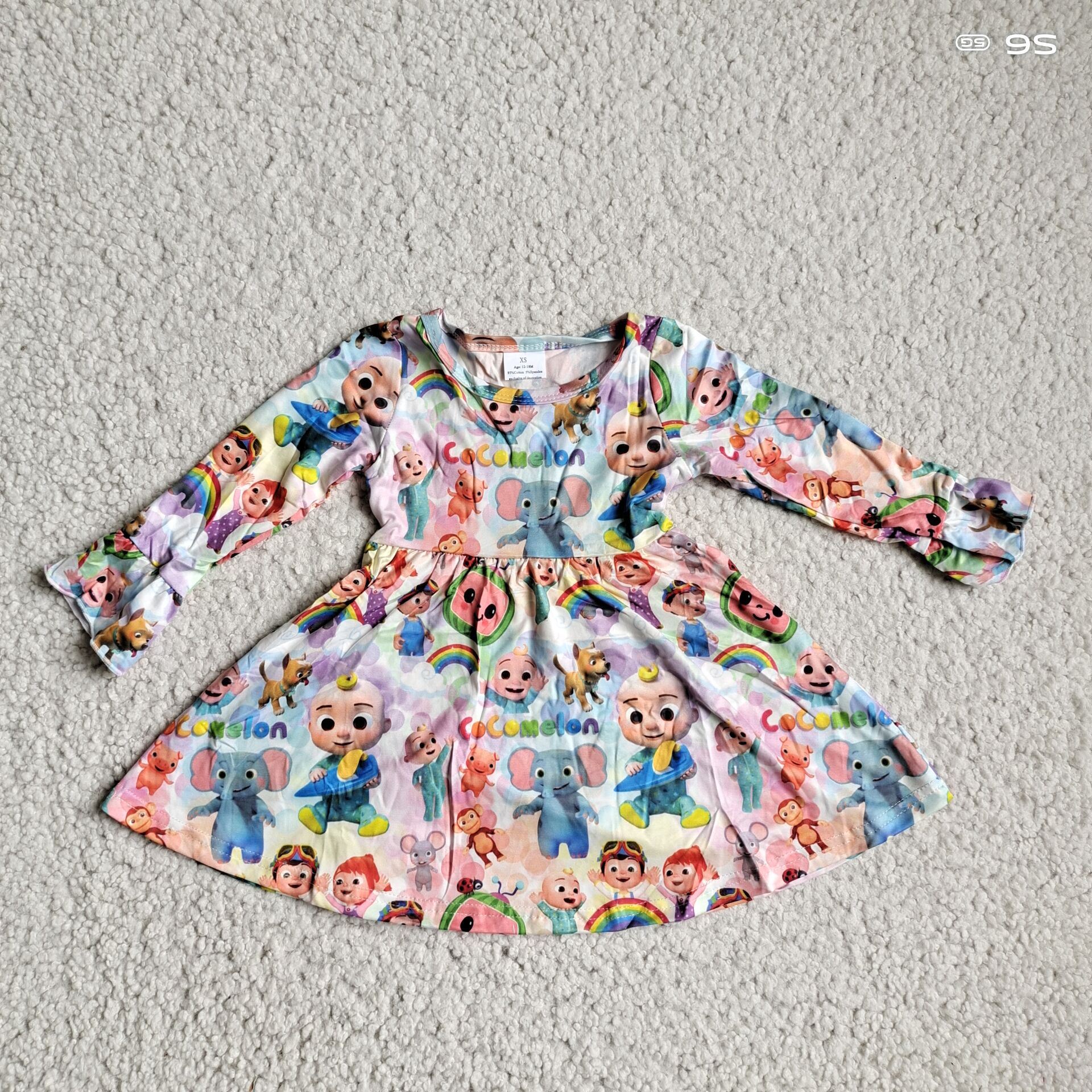 9.29 RTS NO MOQ(In stock)G3-12-2*/- Baby Girls Winter Dress Pig elephant rainbow long sleeve dress