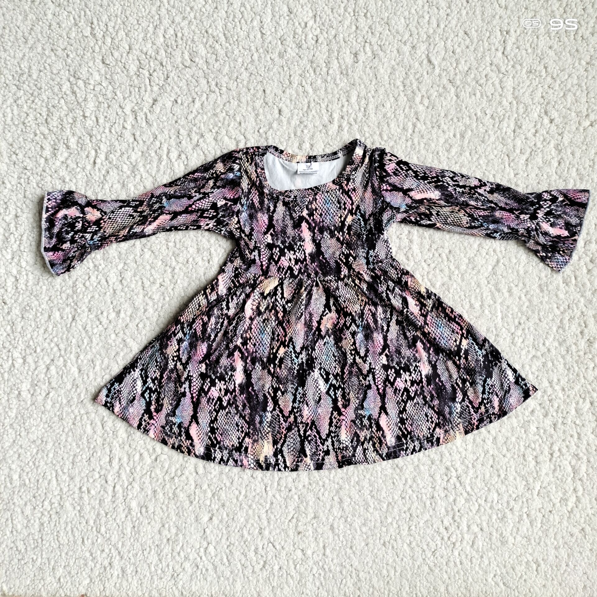 9.29 RTS NO MOQ(In stock)G3-12-6*/ Baby Girls Winter Dress Purple and blue snakeskin flared long-sleeved dress
