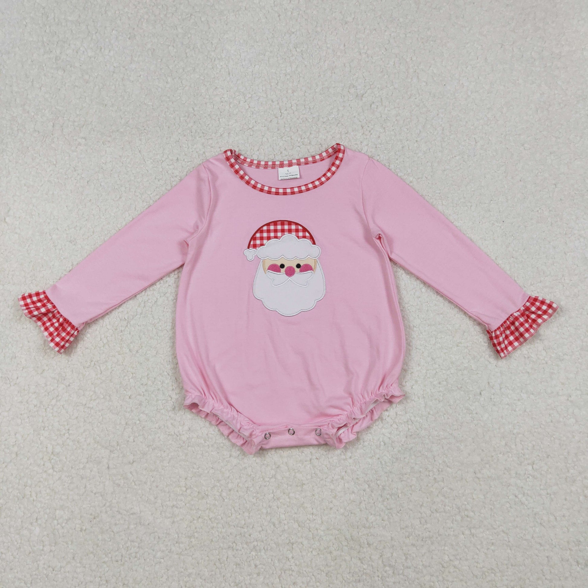 9.30 RTS NO MOQ (In stock)LR1733 Baby Girls Winter Rompers Embroidery Santa Baby Girls Pink Long Ruffle Sleeve Christmas Rompers