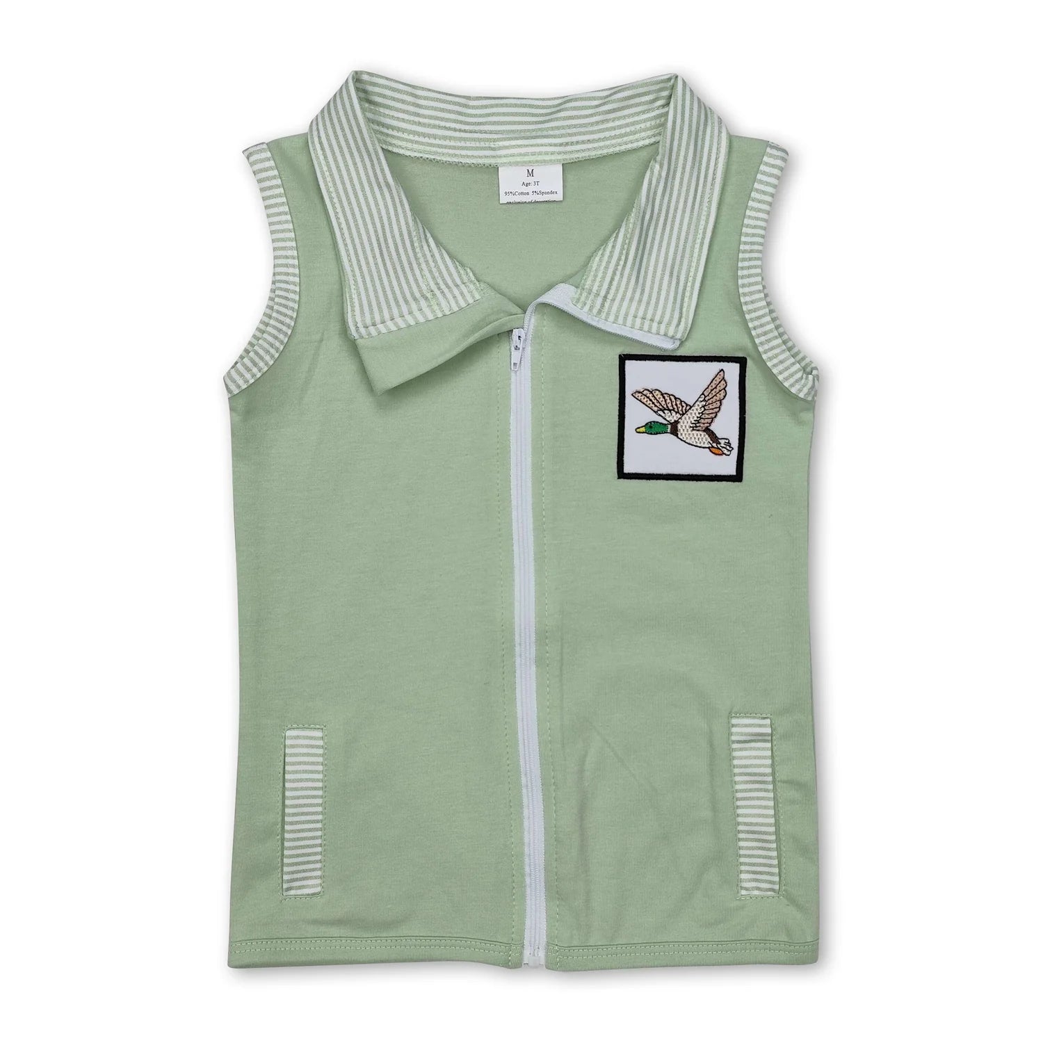 9.30 RTS Sibling Baby Boys Sleeveless Embroidery Deer Dog Duck Pocket Zipper Jackets Top